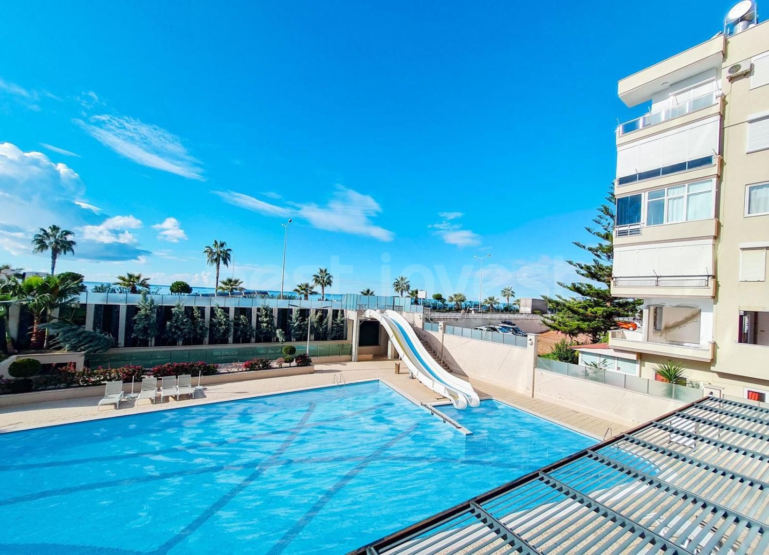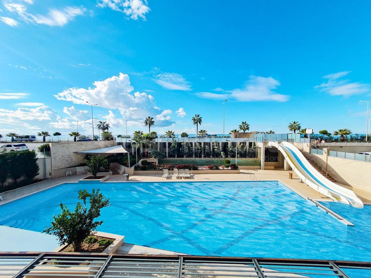 Die 2019 erbaute Wohnanlage besticht durch ihre umfangreichen sozialen Einrichtungen. Mit Außen- und Innenpools, einem Aquapark, einer Sauna, einem Hamam, einem Fitnessraum, einem Dampfbad sowie Massage- und Ruheräumen bietet sie den Komfort eines Ferienresorts. Für Kinder gibt es einen Spielplatz und einen Kids-Club, für Sportbegeisterte Tennis- und Basketballplätze. Darüber hinaus gibt es Gemeinschaftsbereiche mit Pavillons und Grillplätzen, in denen Sie angenehme Stunden verbringen können.