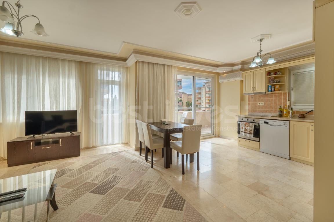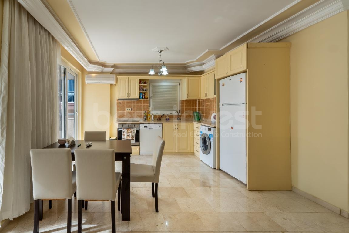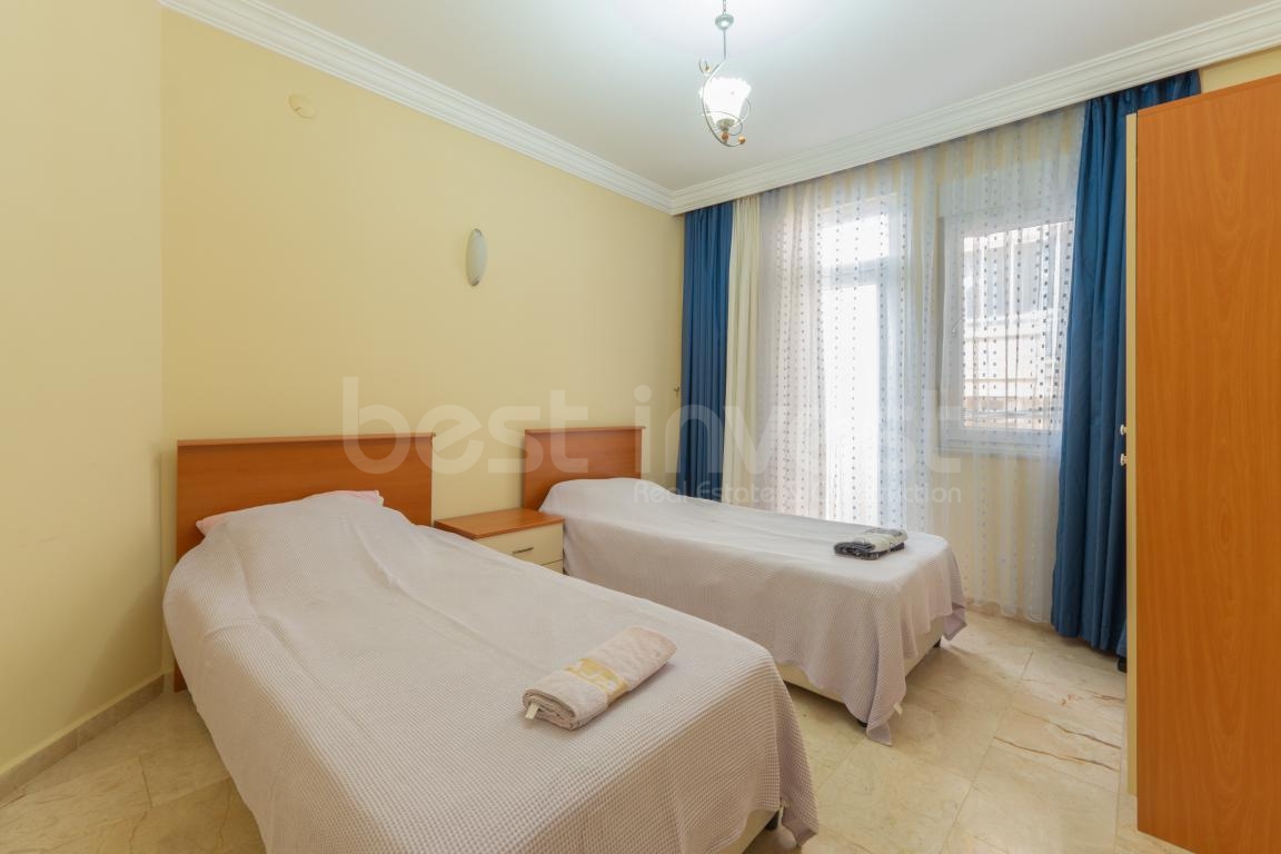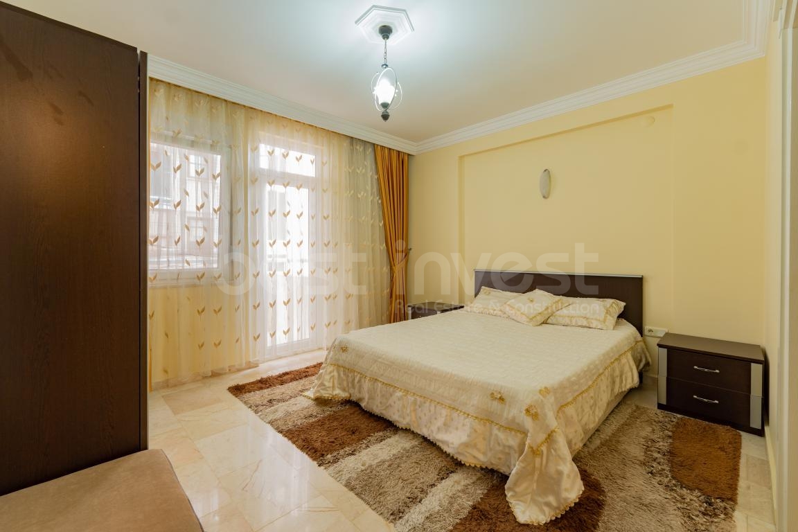 Oferujemy wspaniały apartament w popularnej dzielnicy Mahmutlar w Alanyi, zaledwie 50 metrów od morza, wyposażony we wszystkie udogodnienia nowoczesnego życia. Ten dwupokojowy (2+1) apartament o powierzchni 100 m² na 3. piętrze jest w pełni umeblowany stylowymi i nowoczesnymi meblami. Obie sypialnie mają własne łazienki, a apartament posiada również dwa duże i przestronne balkony.