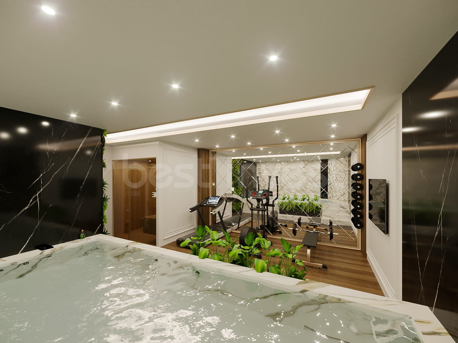 Pomieszczenia socjalne: Winda Sauna Fitness Jacuzzi Camellia Plac zabaw dla dzieci Parking zewnętrzny Centralny system satelitarny Kamera bezpieczeństwa Elektryczny system rolet METODA PŁATNOŚCI: 30% zaliczki, pozostała część płatna w ratach do terminu zakończenia.