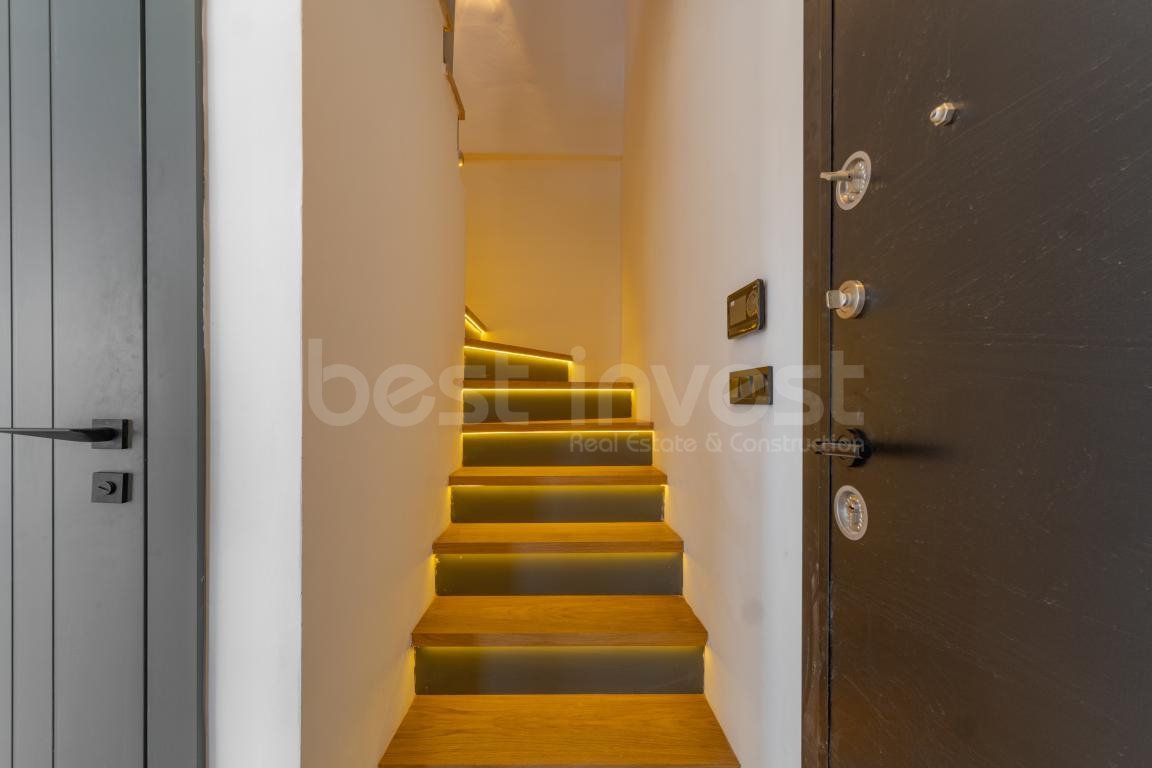 Благодаря двухуровневой планировке жилые помещения идеально разделены, в квартире есть 2 ванные комнаты и 2 балкона.