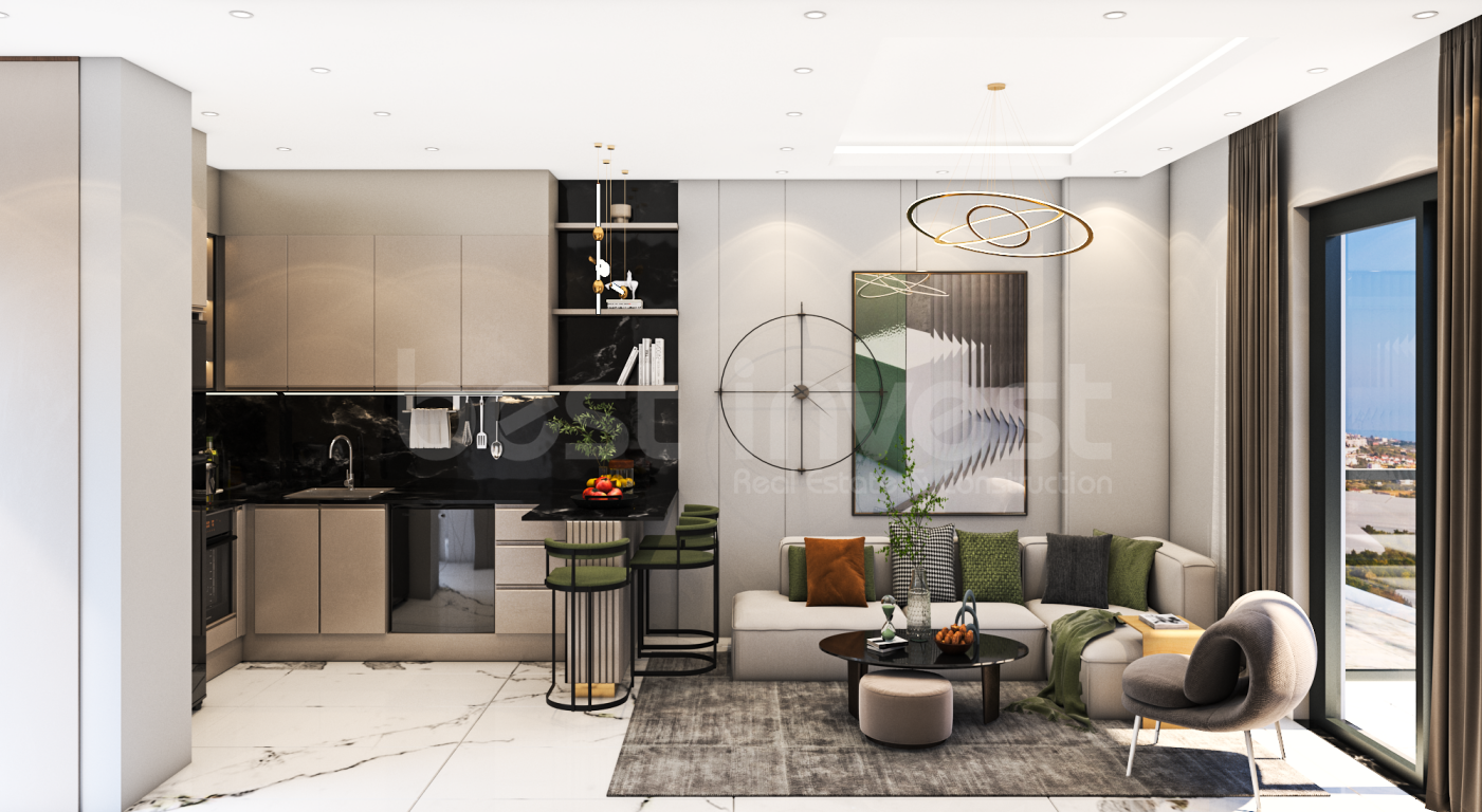 2+1 duplex (105 м2) — двухуровневые двухуровневые апартаменты с 2 спальнями на верхних этажах + кухня американского типа (объединенная кухня с гостиной), 1 ванная комната, 1 гостевой туалет и 2 балкона.