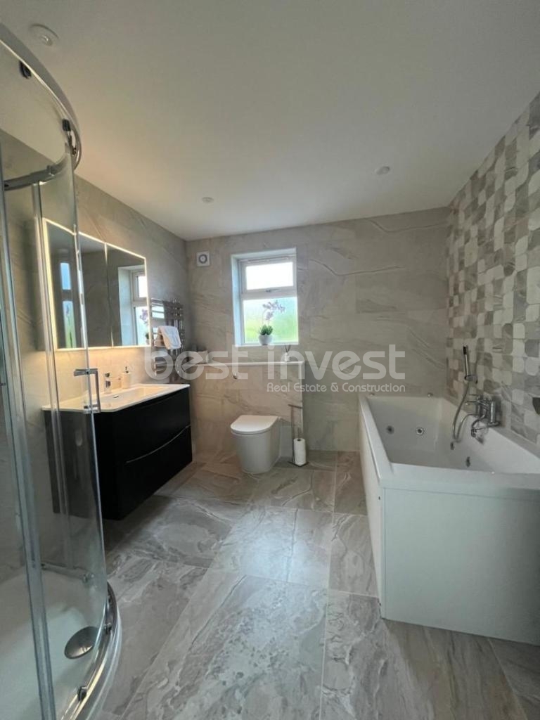 Each bedroom is thoughtfully designed with built-in wardrobes and modern en-suite bathrooms, all fitted with heated towel rails. The main bathroom is further enhanced by a jacuzzi bath, offering a spa-like experience within the home.