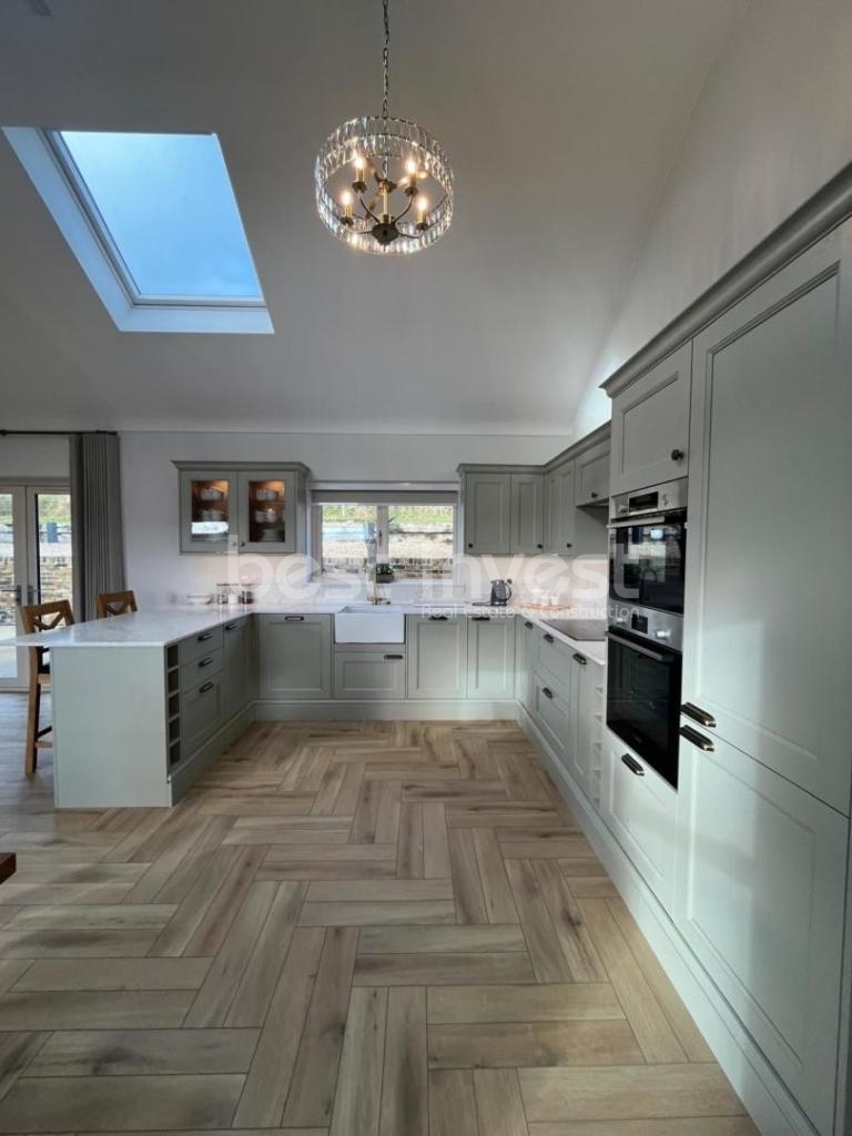 This exceptional four-bedroom country residence combines traditional craftsmanship with modern comfort, set within a peaceful rural setting in Drumaleague, Co. Leitrim, Ireland. Designed to maximise space and natural light, the home features cathedral ceilings that create an impressive sense of openness, enhanced by automatic Velux roof windows that open electronically and close automatically when rain is detected.
