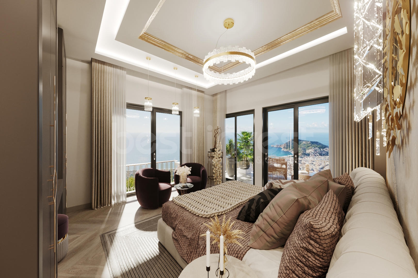 Opulence and excess combined with the reflections of gold, all form part of these futuristic smart villas in the sun. The properties are located in the most recognised, prosperous area of the region approximately 3km from the sea, Alanya centre and its historical Kale (castle). There integration into the hillside, the clever architectural concepts adopted which maximum the absorption of natural light and the idyllic positioning of glass features to maximise views, make them suitable for all year round living. Intensified by the dazzling wide-angle views of the surrounding physical space, the bountiful scenery and the generous Mediterranean prospects, each unit brings its own unique qualities. There elegance is pronounced by the dominating dual main pillar elements to the front, the integrated architectural moulding and design features, the plain white finish and the bold roof structures.