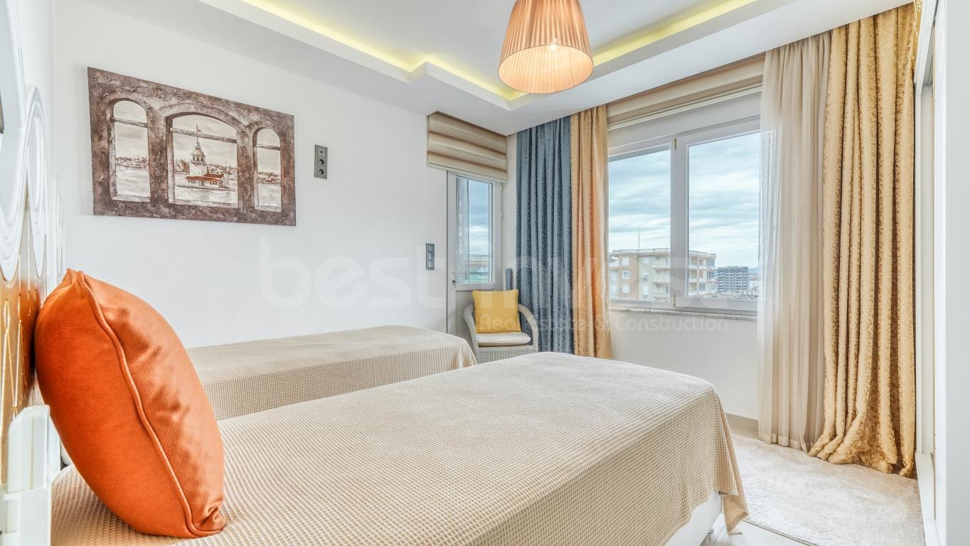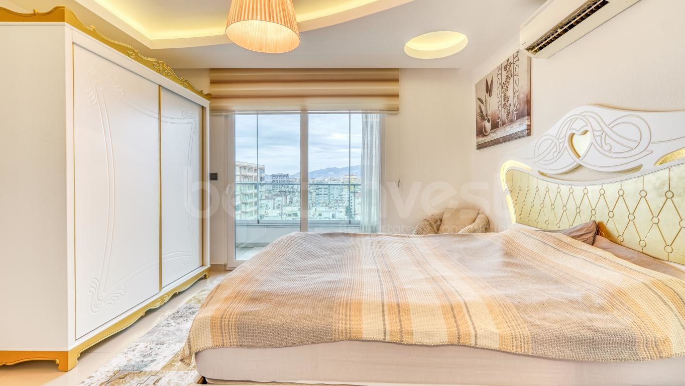 A large and spacious 3+1 duplex apartment is available for sale in the Yenisey 6 complex, which offers luxury and comfort together in Mahmutlar neighborhood, one of the favorite areas of Alanya. Located on the 11th floor, this special apartment is 217 m² in size and fully furnished. It offers both a comfortable and prestigious life with its modern architecture, use of quality materials and large living spaces.