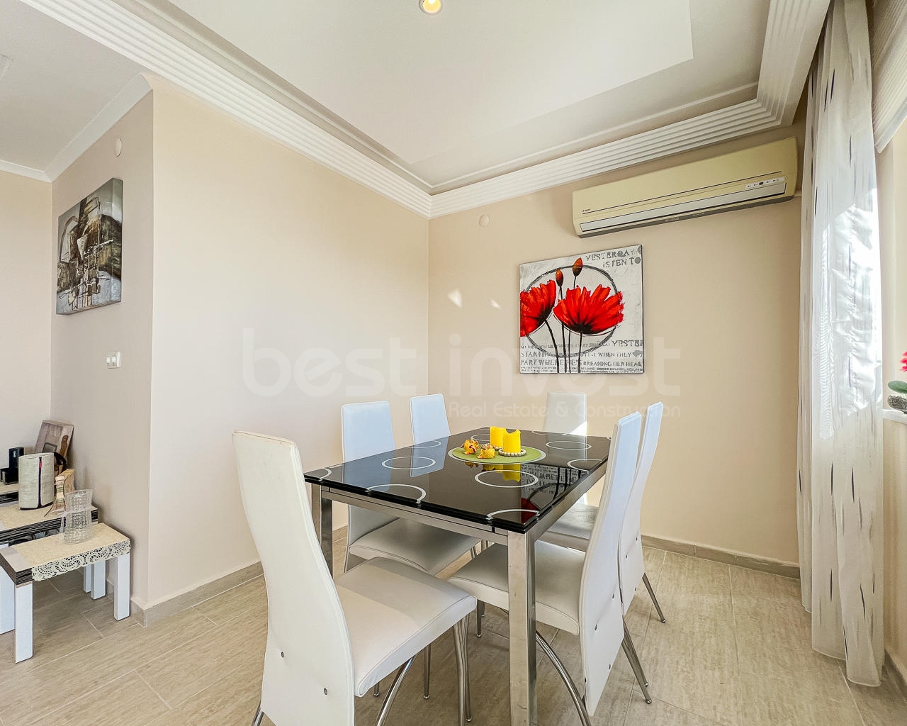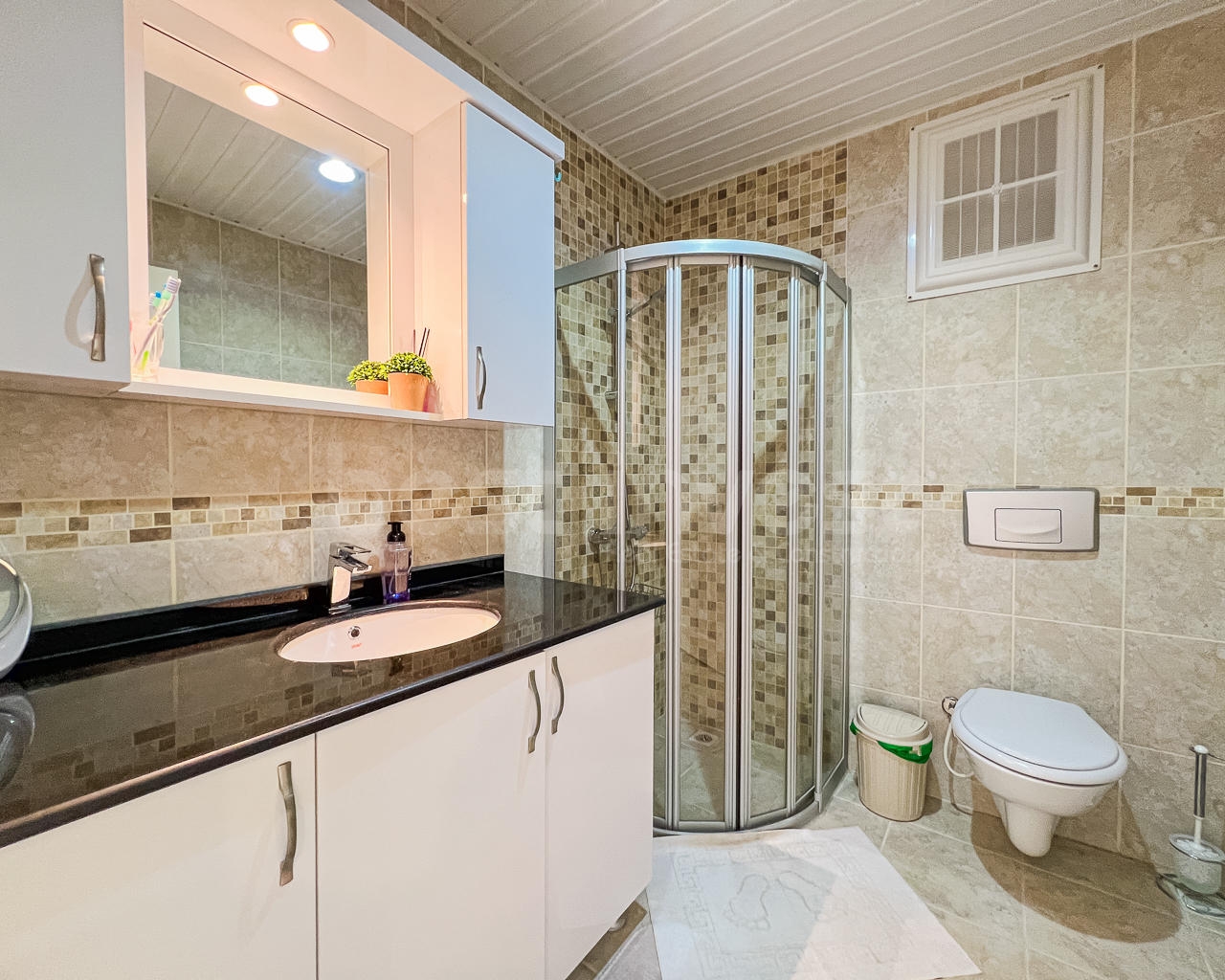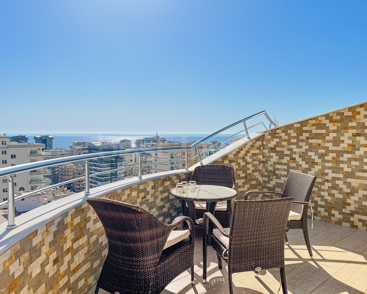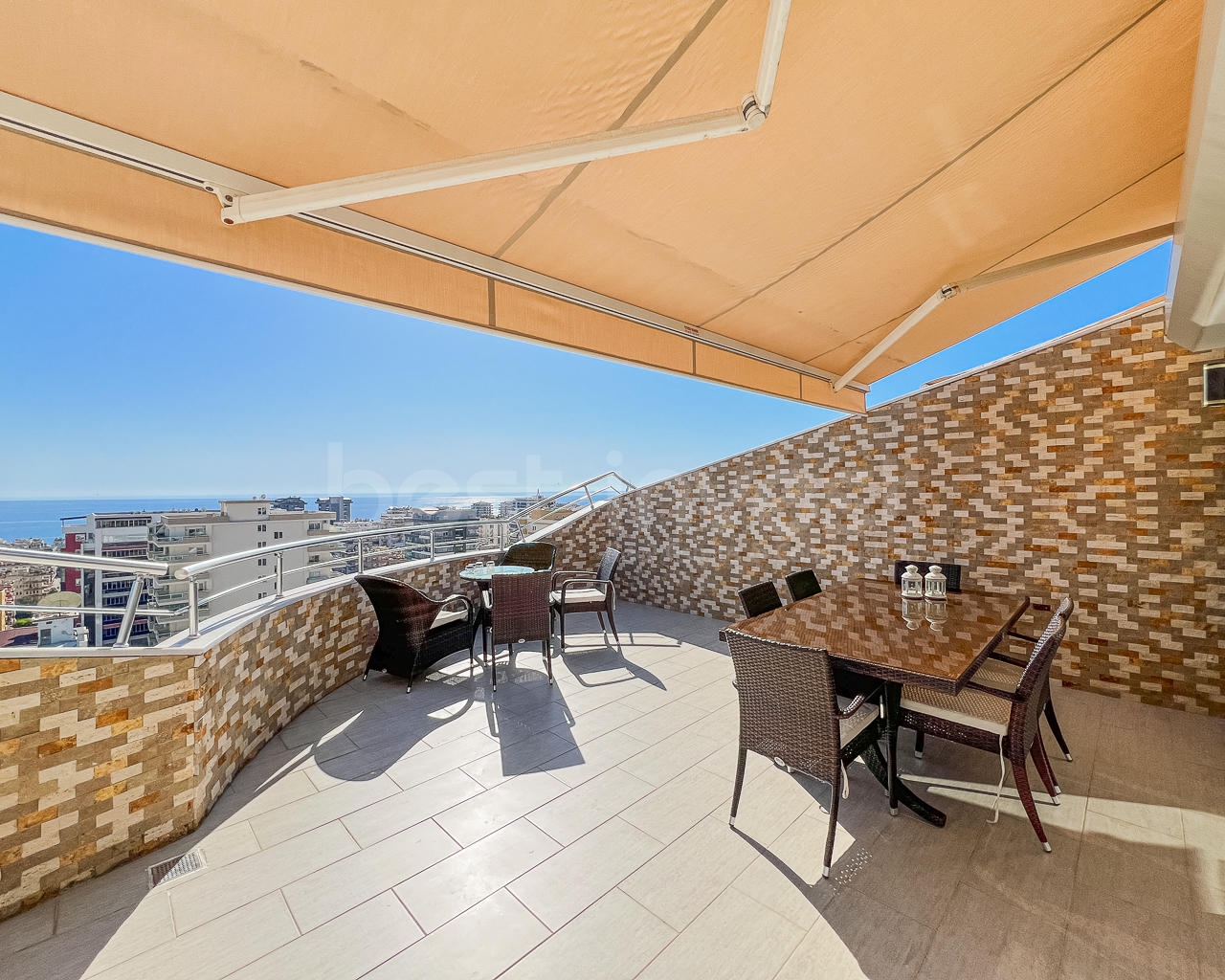 In Mahmutlar, one of the favorite areas of Alanya, a 3+2 duplex apartment for sale in the Nordic Garden complex, which offers comfortable living spaces, is waiting for you. Located on the 11th floor, this spacious apartment has a total gross usage area of 170 m² and is sold fully furnished.
