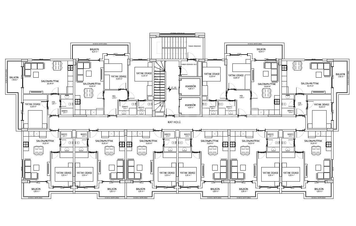 72 1+1 flats of 50 and 55 m2 – 1 balcony, 1 bathroom and toilet