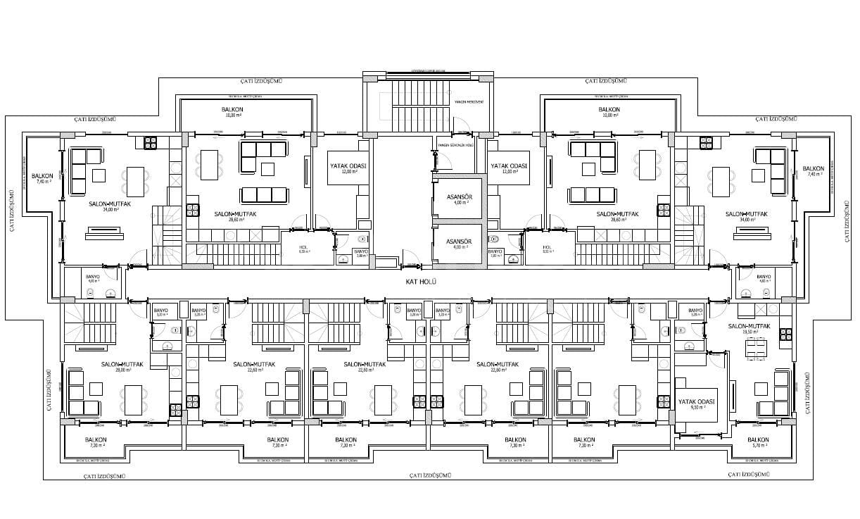 Our project, which will be located in Alanya Avsallar, 304 Island, 4-5 and 6 plots, has an area of 1728 m2. Our project consists of 1 Block with 9 floors and 96 independent sections. There are 10 flats on the ground floor of our project, including 6 1+1 flats, 8 1+1 flats and 2 2+1 flats on each floor from the 1st to the 8th floor. The 9th floor of our project will consist of 3 3+1, 2 1+1, 5 2+1 duplex apartments.