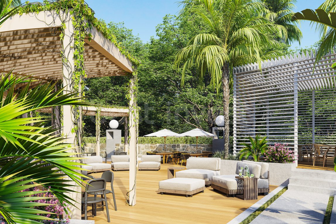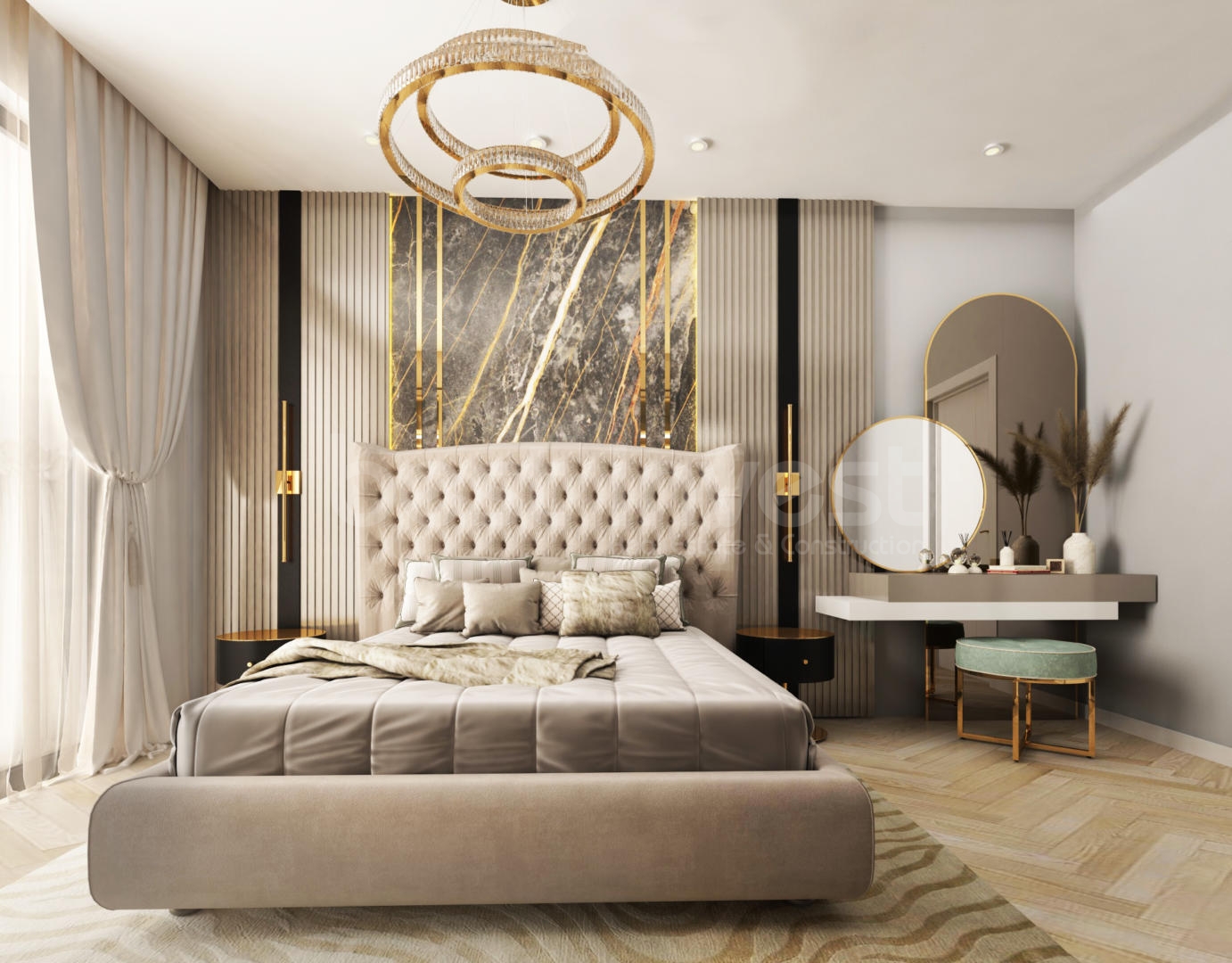 A large open-plan kitchen with modern cabinets and countertops leads to a spacious living room. The luxurious bathrooms are equipped with first-class plumbing and are distinguished by functionality and chic. The large windows and balconies offer stunning views of the sea and the picturesque mountains. Spacious balconies create an atmosphere of indoor and outdoor living, which are so attractive and provide additional space for entertaining or dining outdoors.
