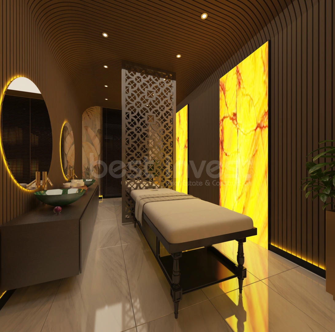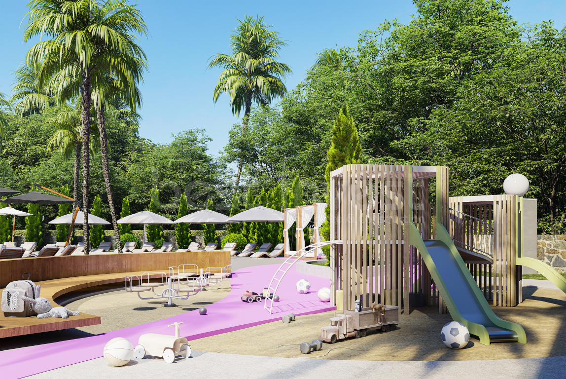 The shared facilities are exceptional, with a large swimming pool and spacious terraces for sunbathing. It’s easy to imagine relaxing in a luxurious SPA while your kids have fun in special playrooms and your partner trains in a well-equipped gym.