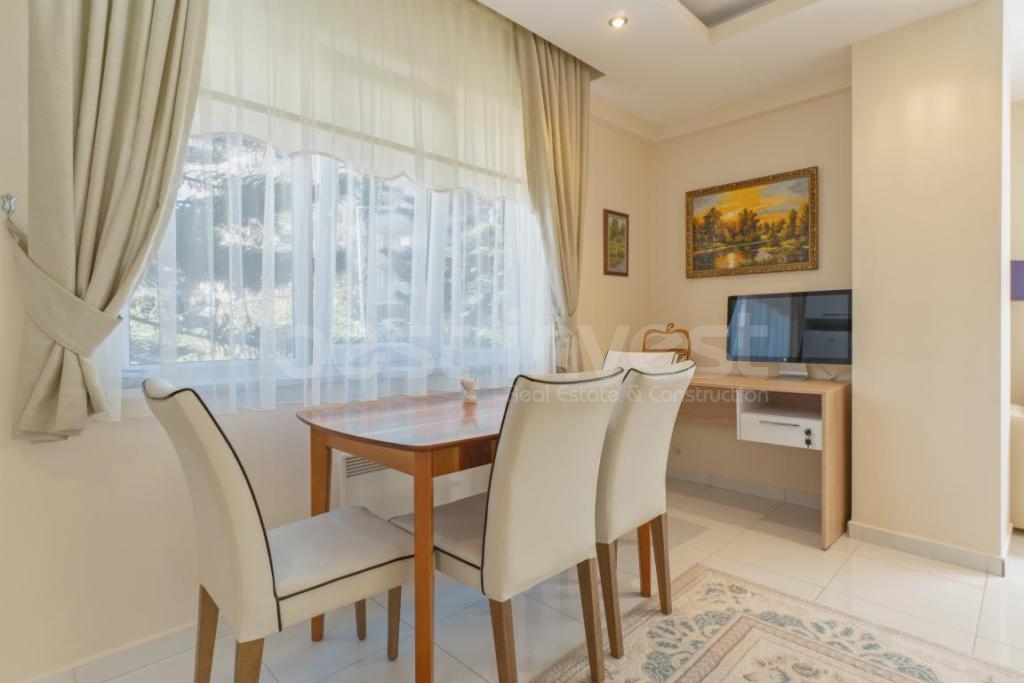 The apartment is on the 1st floor and has an area of 65 m². It features 1 bedroom, 1 living room + open kitchen, 1 bathroom, and 1 balcony. The apartment is offered for sale furnished, so you can move in immediately after purchase or rent it out.