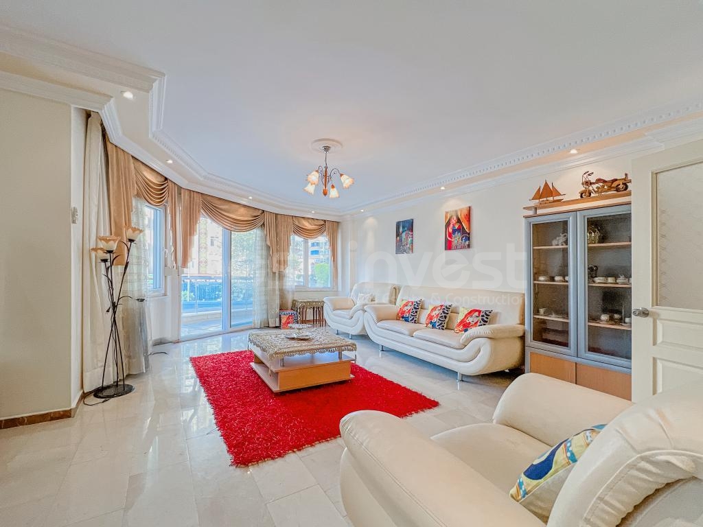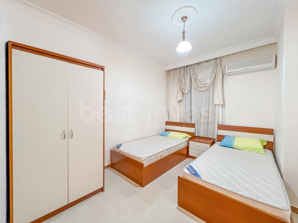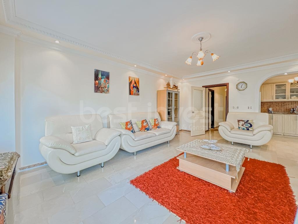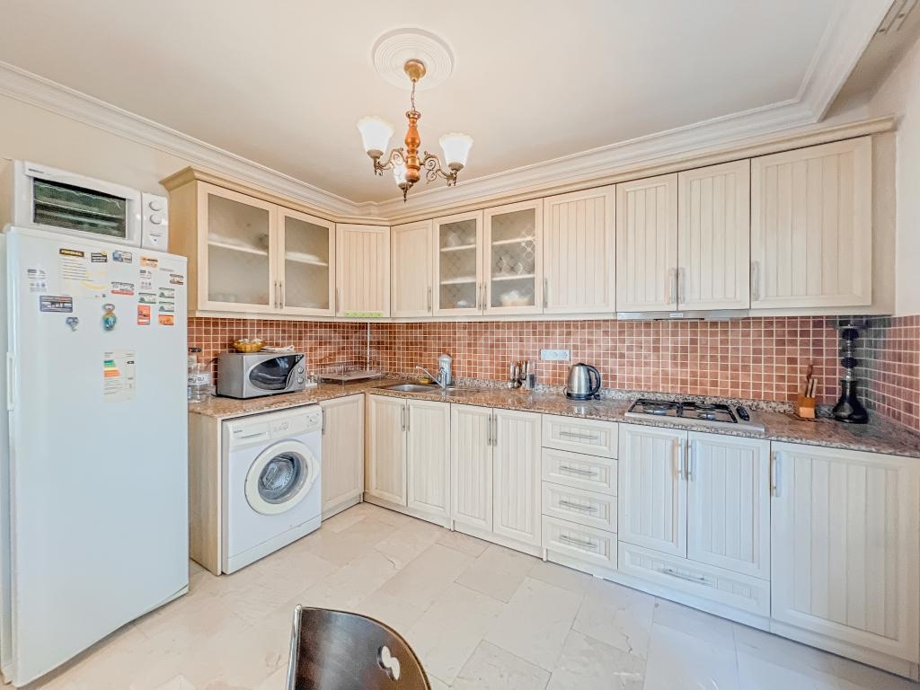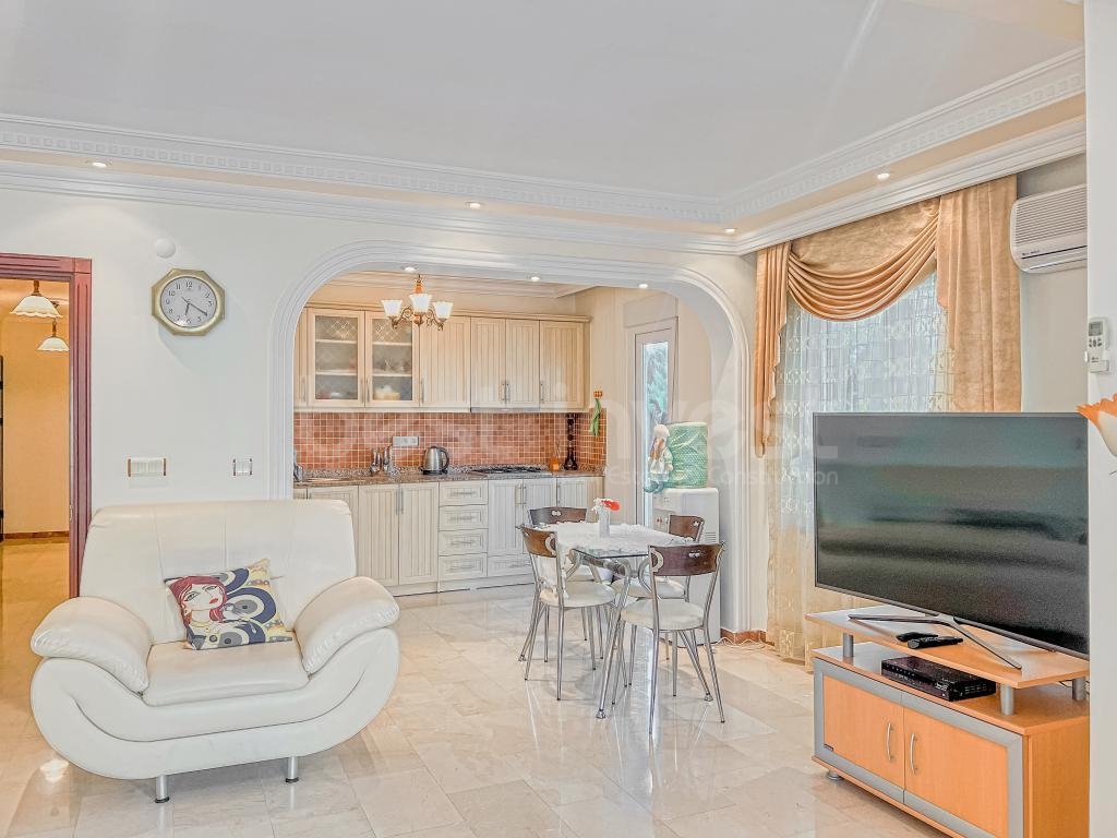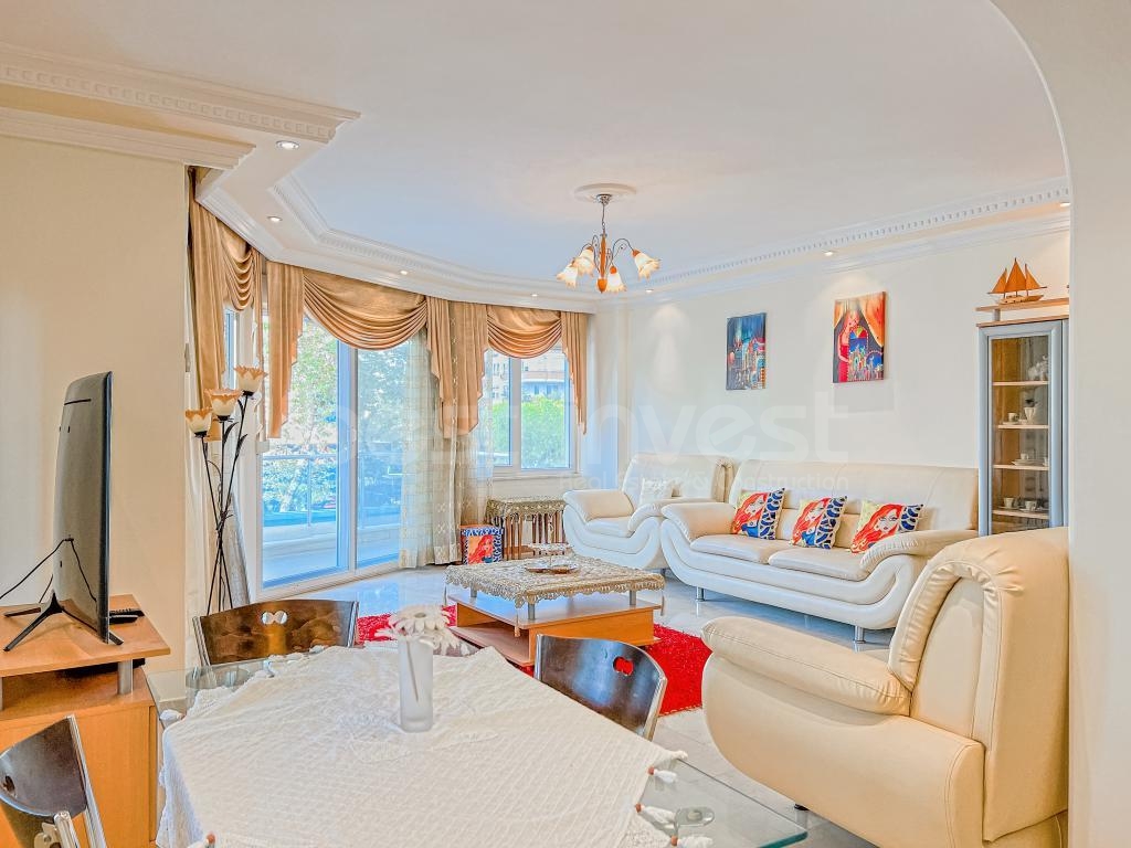 Located right next to the sea, this 2+1 apartment offers a peaceful and privileged lifestyle. Situated on the first floor, it provides both easy access and a spacious living area. With a total area of 110 m², the apartment is delivered fully furnished, offering a hassle-free living experience ready for immediate move-in. The interior layout is extremely practical, with two bathrooms providing ideal comfort for families. Facing northwest, the apartment enjoys soft daylight at certain times of the day, creating a bright atmosphere.