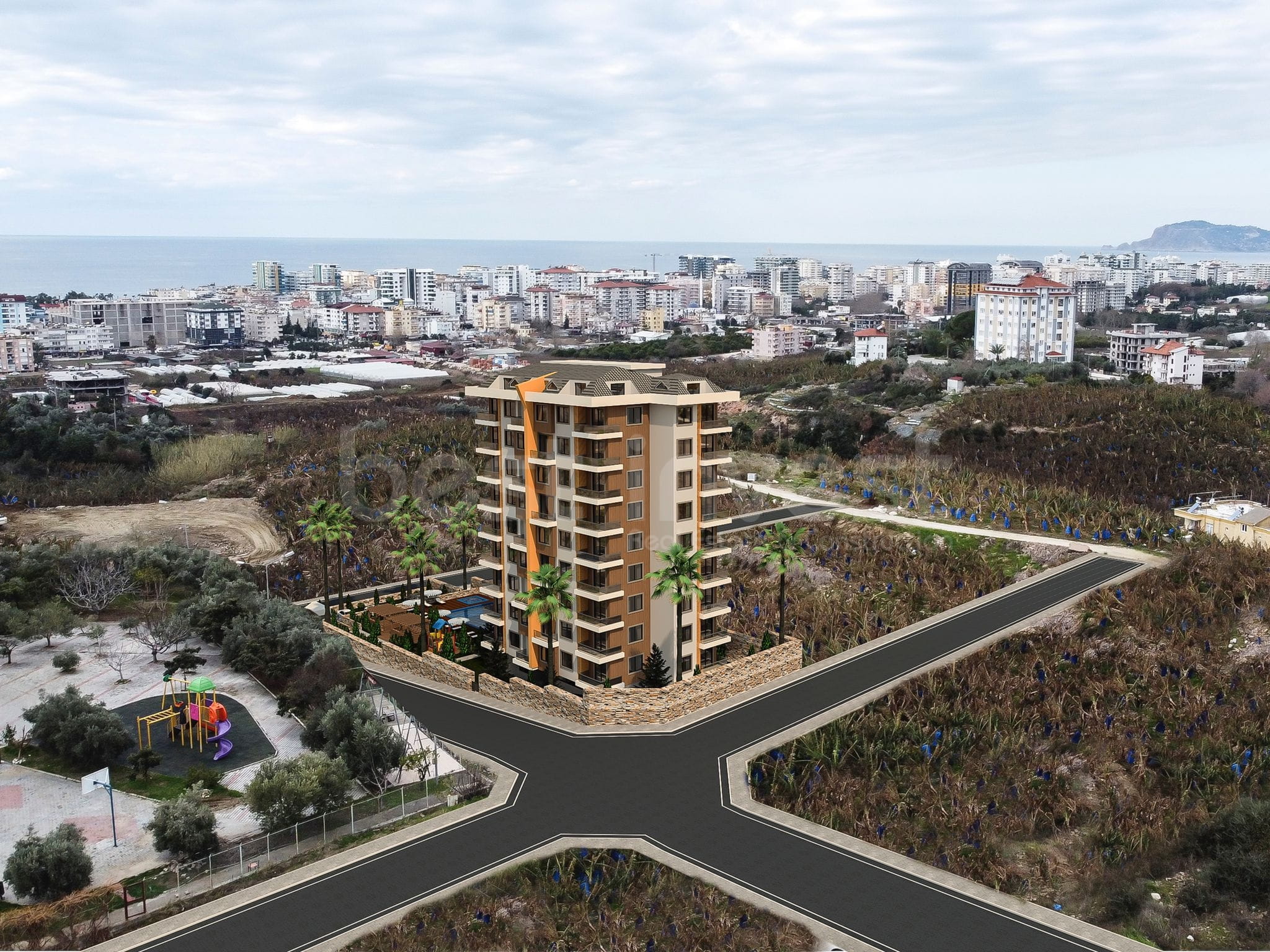 Мы здесь с нашим новым проектом. Наш проект находится в Махмутларе, в 1100 метрах от моря.