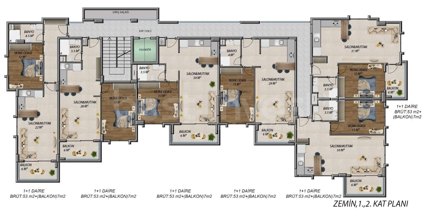 -16 квартир 1+1 60 м2