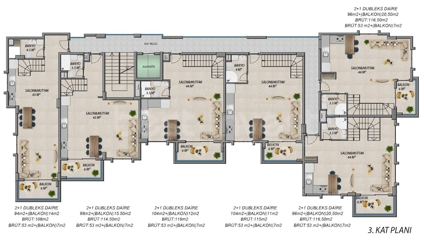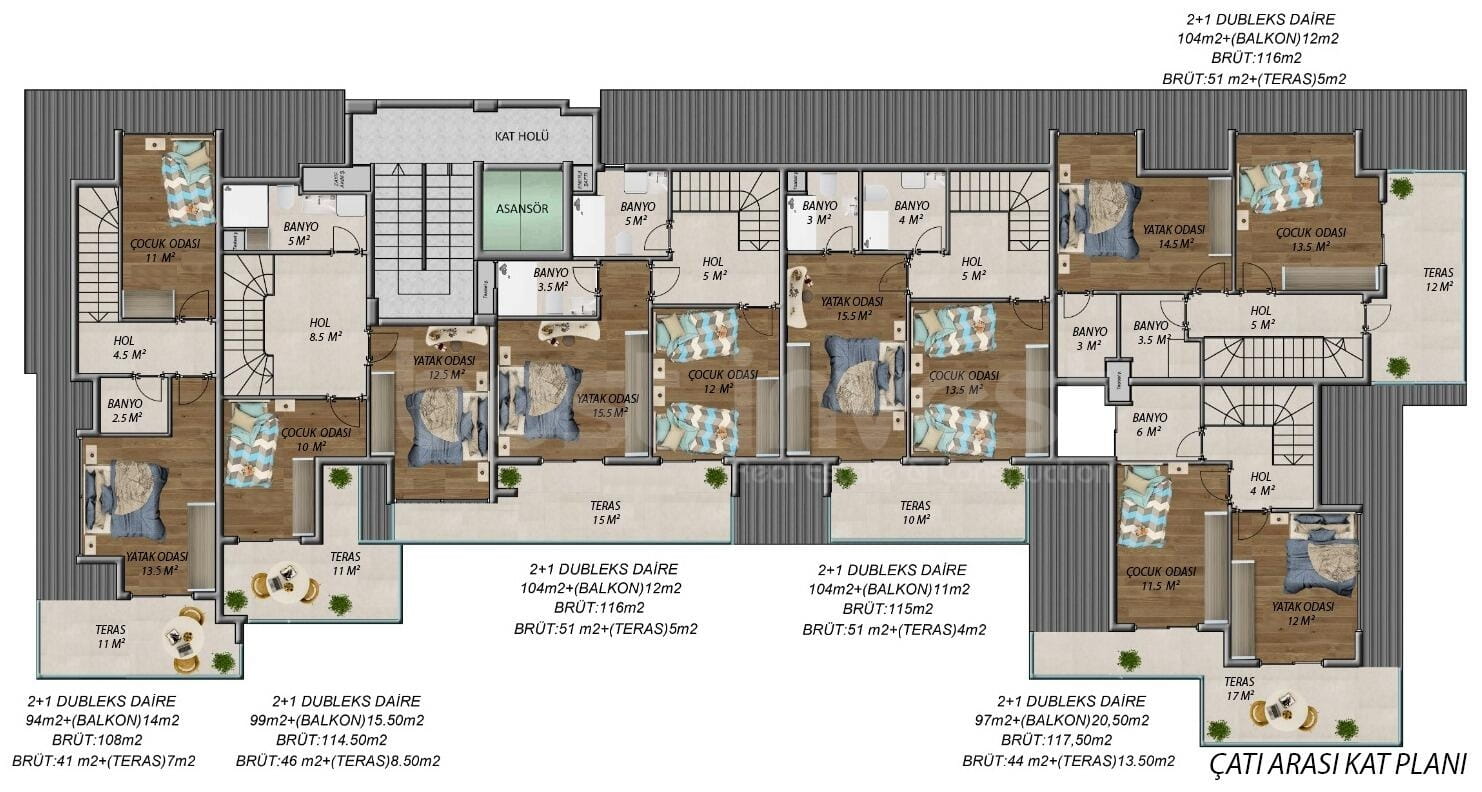 -6 квартир 2+1 Дуплекс 140 м2