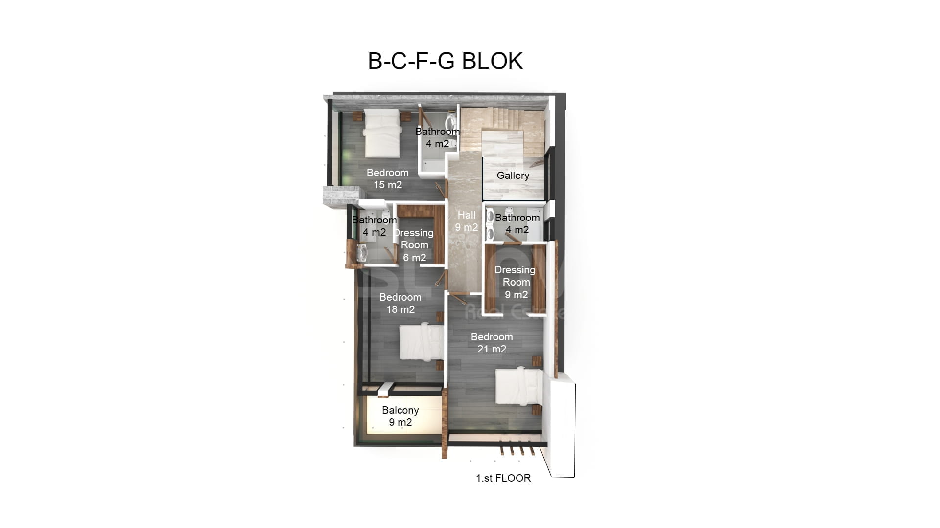 B-C-F-G Тип 4+1 Виллы Общая площадь: 230 м²