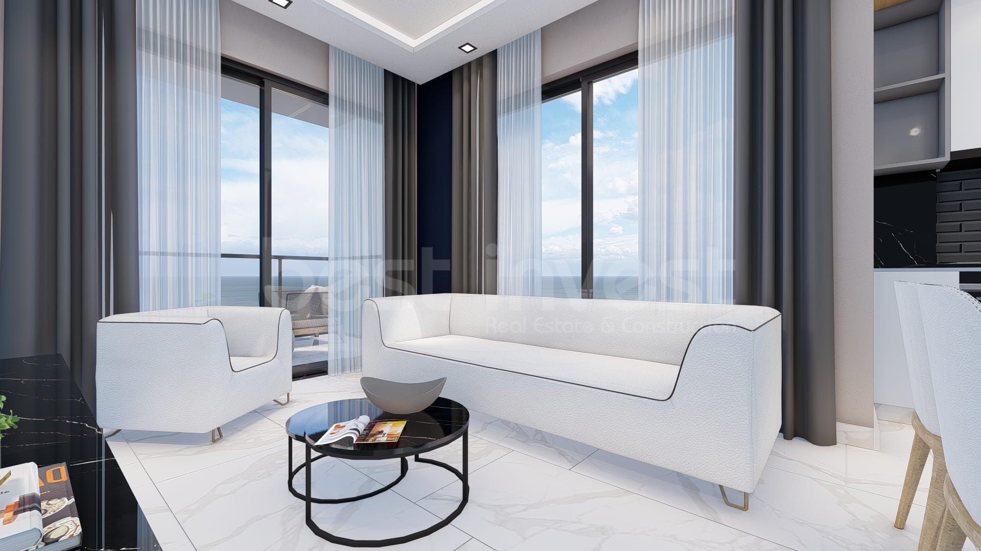 Our project is located in one of the quietest and most comfortable areas of the city. The region is famous for its sandy beaches and natural beauties. Our project was built in accordance with European standards. Apartments are sold with first class finishing. The location of our project has all necessary urban facilities, cafes and restaurants, chain supermarkets and a farmer's market on Wednesdays, public hospital and private clinics, pharmacies, kindergartens, schools, banks, etc.