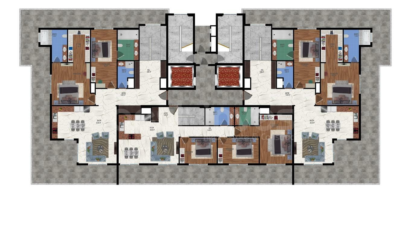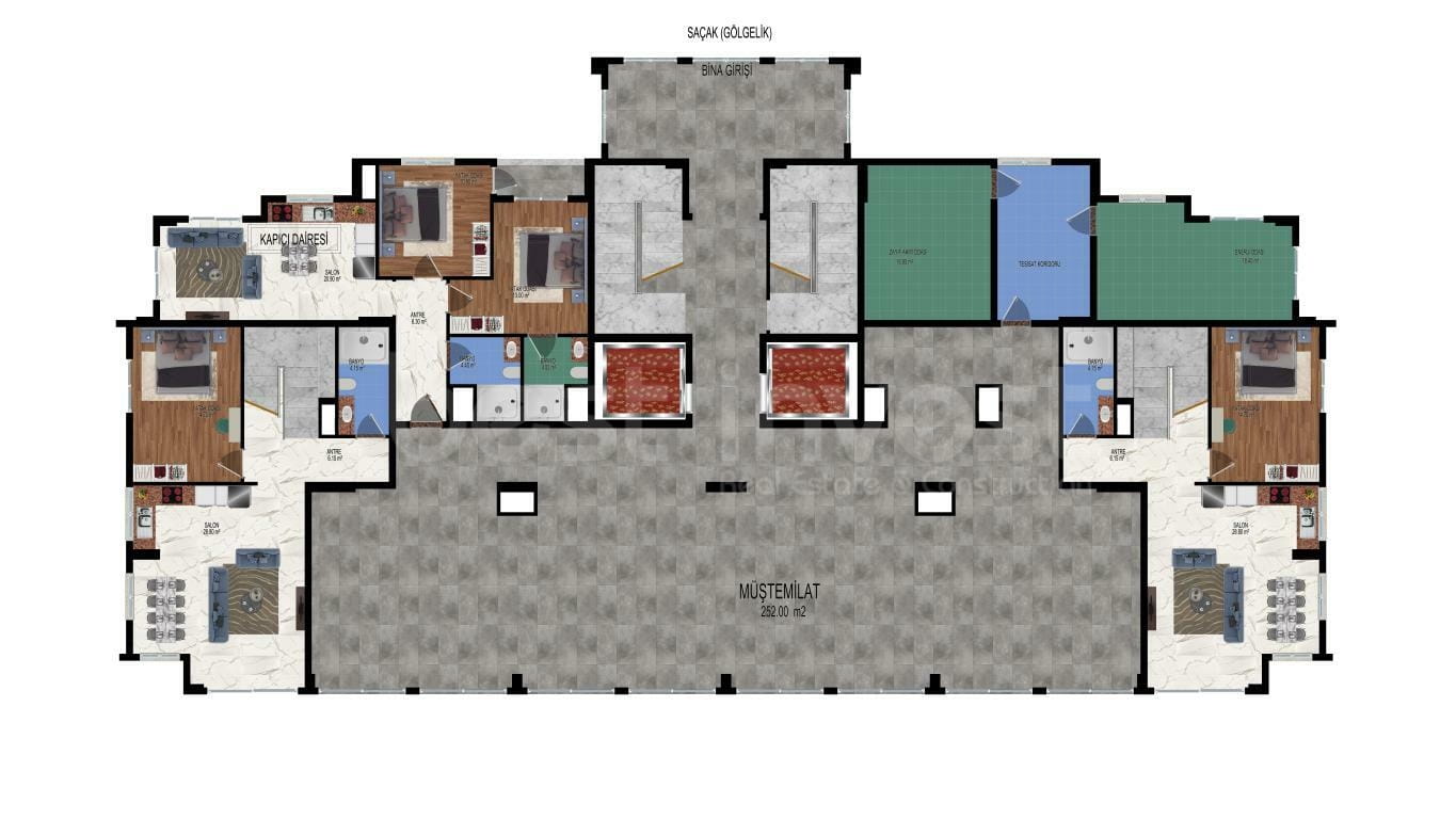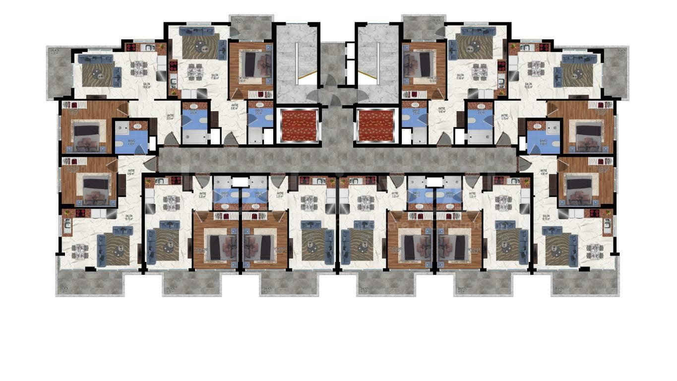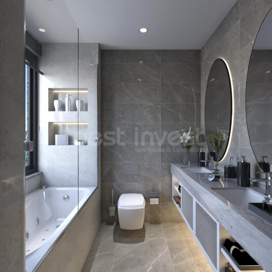 SUNSET PANORAMA will be equipped with a complete infrastructure with indoor and outdoor social facilities. All apartments will be delivered with built-in kitchen cabinets, water purification system and bathroom cabinets. Our project consists of 1 12-storey block and there are 106 apartments. The total area of the project is 5019 m2 and the apartments have sea, mountain, city and castle views.