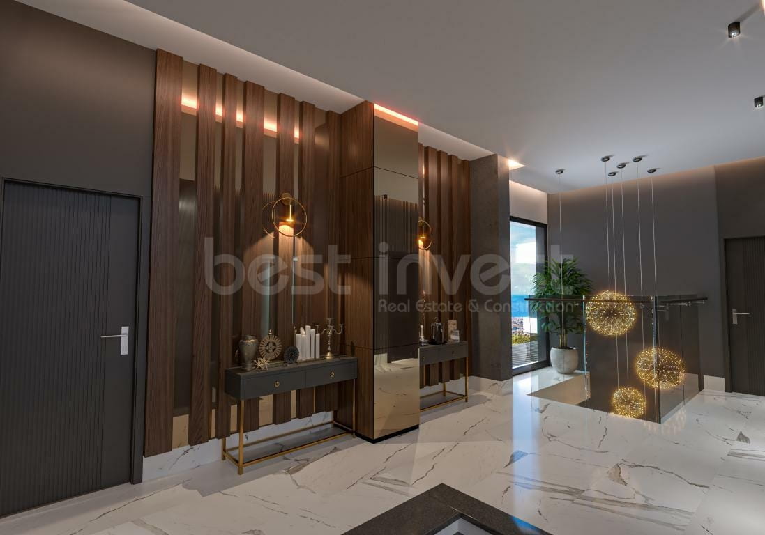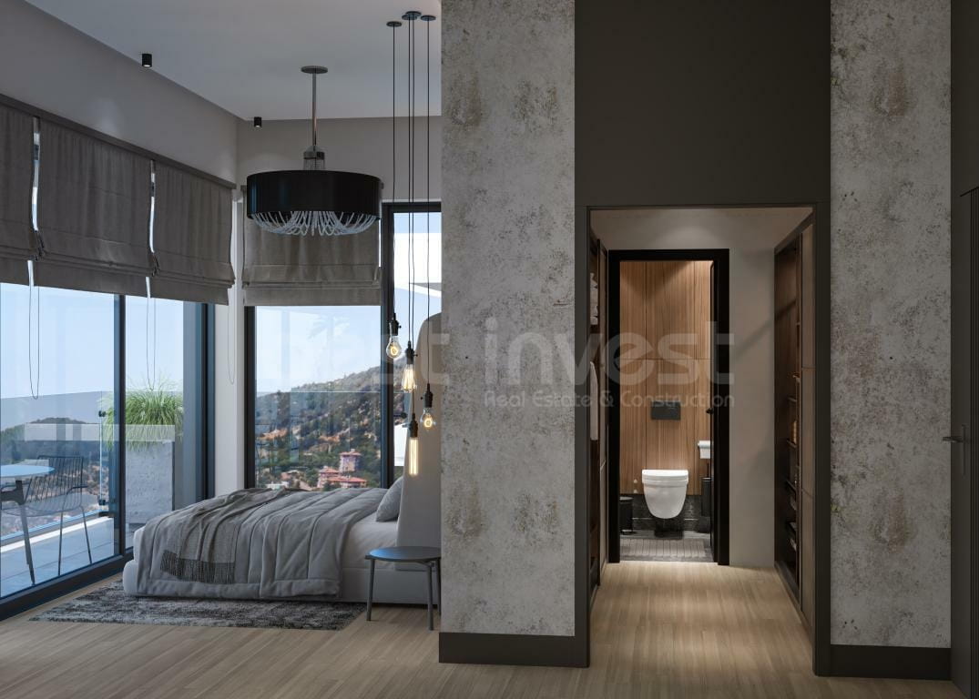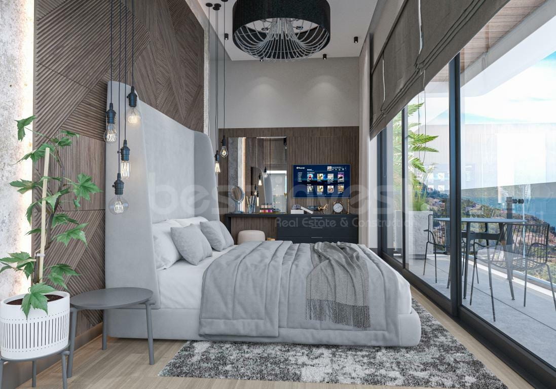 These luxury villas have 3 or 4 floors and their dimensions vary between 270 m2 and 470 m2. On the ground floor of all villas, there is a large terrace and a specially designed kitchen and dining area that opens to the garden, and an open-plan living area. On the first floor there are 3 or 4 bedrooms and 1 shared bathroom. Each of the master bedrooms has a private dressing room and en-suite bathroom. Each room has large floor-to-ceiling windows that allow you to easily absorb natural light and enjoy the stunning views of Alanya and the sea. In addition, there are large hobby rooms in the basement of each villa, where you can build a private gym or game room and arrange them according to your wishes. Each villa also has a sauna. There is an elevator in 3 villas with 4 floors.