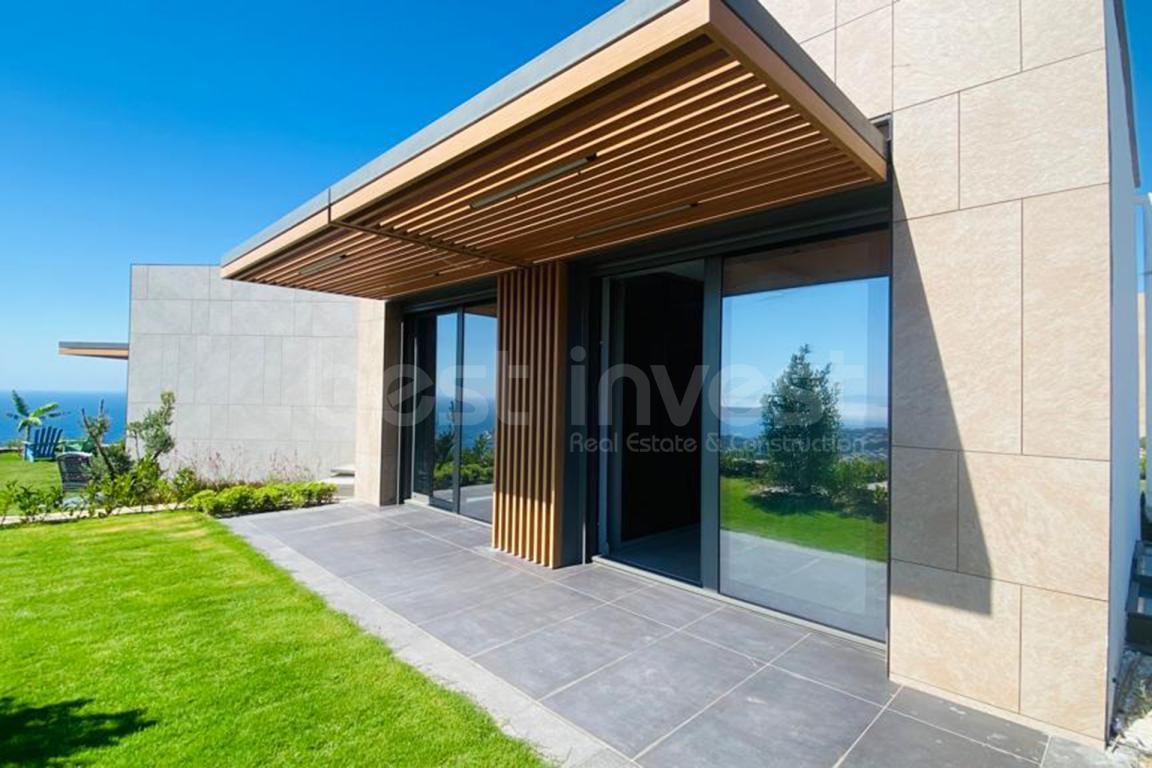 This development of luxury detached villas consists of 18 units constructed on a 9600 sq m site with stunning uninterrupted sunset and sea views. All units have private landscaped gardens, a private swimming pool, open plan kitchen, VRV central heating and underfloor heating. A combination of different options are available. The 5 bed villa has a build area of 260 sq m, 2 bathrooms and 2 private parking spaces. The development was completed in 2022 and is currently available.