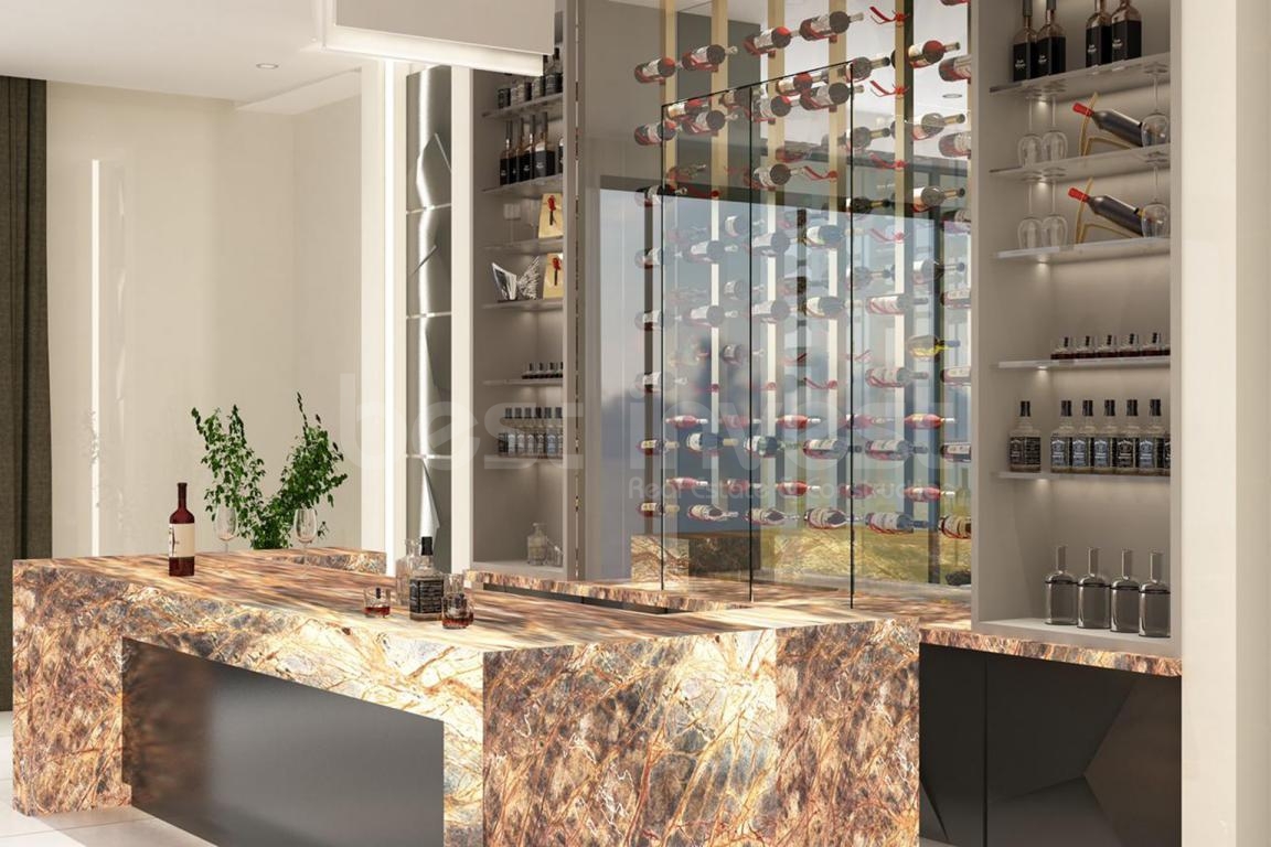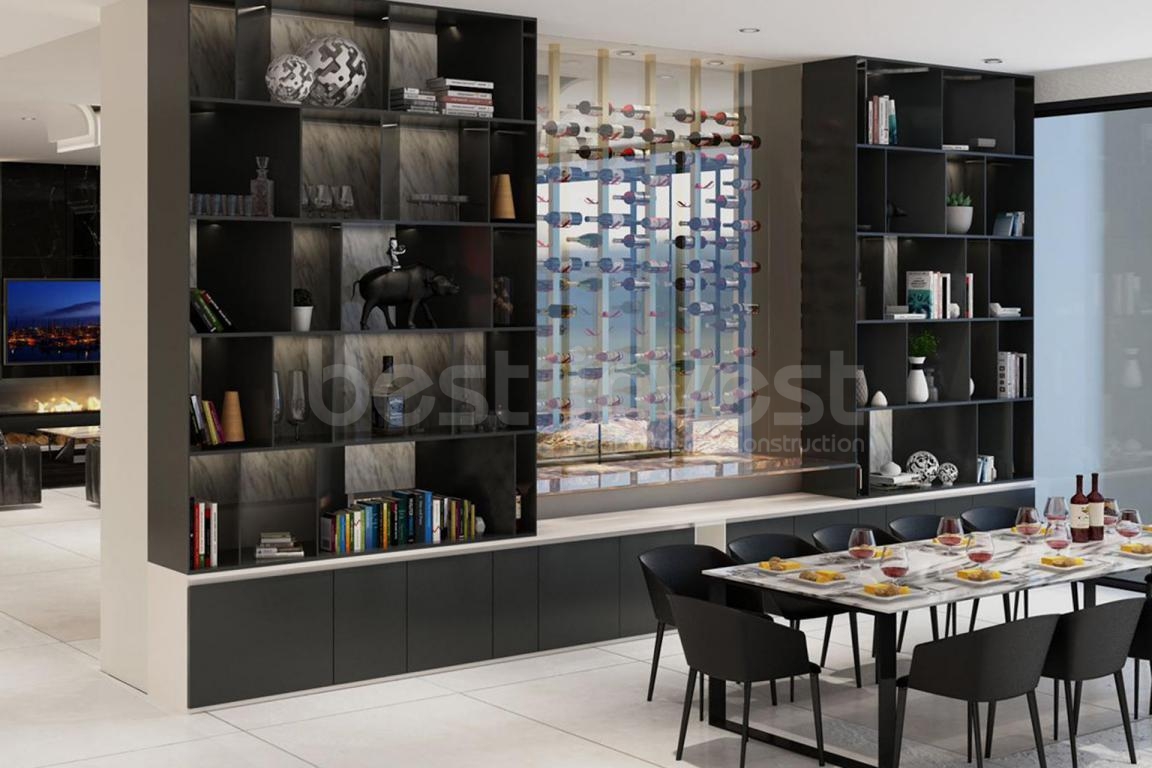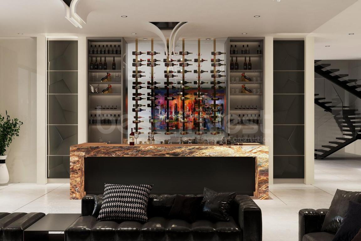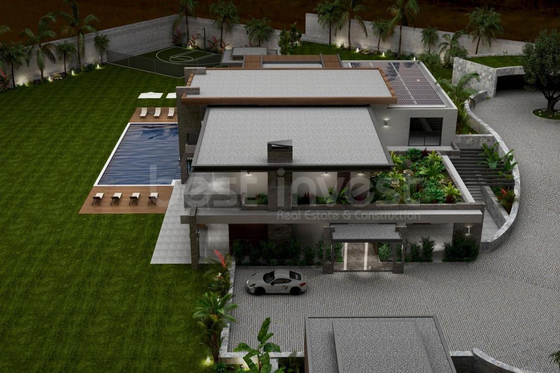 A total of 800sq m of living space is provided. The main building has a fully customized modern architectural design and magnificent sea and marina views which unfold like a postcard before your eyes. It contains 2 spacious lounge areas, state of the art kitchen and dining space, 4 en-suite master bedrooms which capture an abundance of natural light, the latest modern technology, top quality materials, spa, gym, steam room, sauna and jacuzzi.
