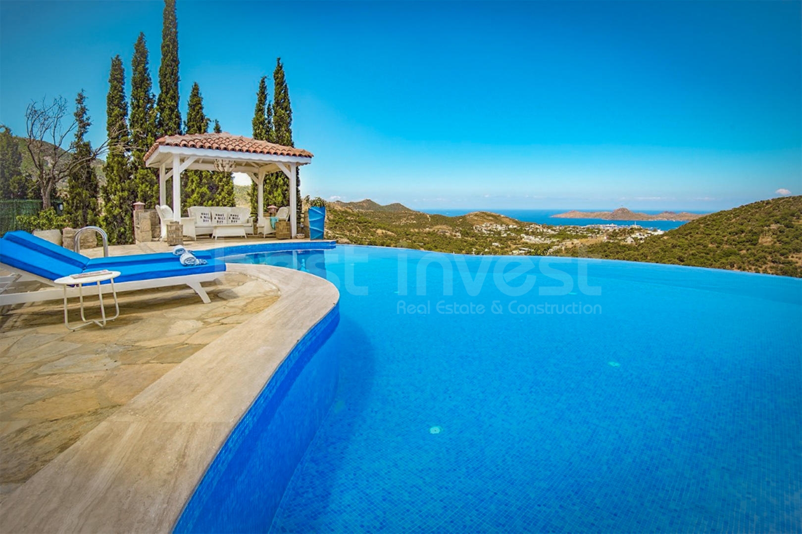 The property is situated on a 3,000 sq m plot with a total living area of 600 sq m and was completed in 2000. It contains: full central heating, high quality fully fitted kitchen with white goods fitted, utility and laundry room, abundant dining and living space with fire place, staff quarters, 5 fully air conditioned double en-suite bedrooms with terrace and balconies, a family bathroom and guest wc/cloakroom and 5 parking spaces. All this and only a stones throw away from traditional fish restaurants and the hustle and bustle of Bodrums nightlife.