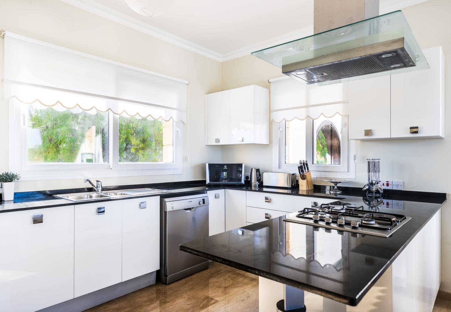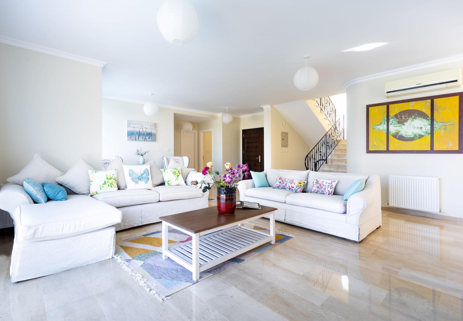 The villa’s design exudes practicality and style. Creatively engineered use of the abundant sliding doors create a perfectly designed living for the Mediterranean climate, allowing the sunlight in and ensuring the flow of sea breeze in the hot summer season. The large open-plan living area provides an ideal gathering space for meals and relaxation, making cherished memories with loved ones.