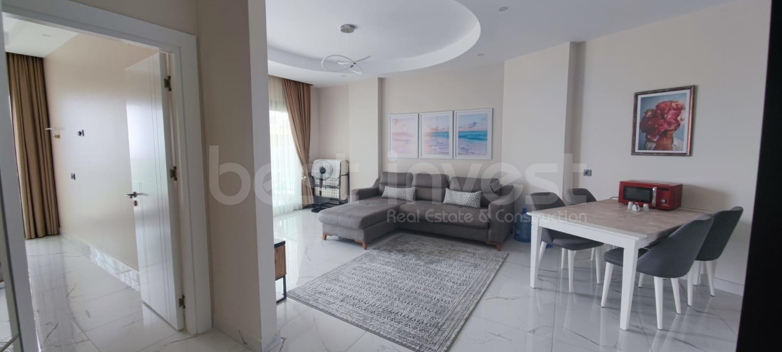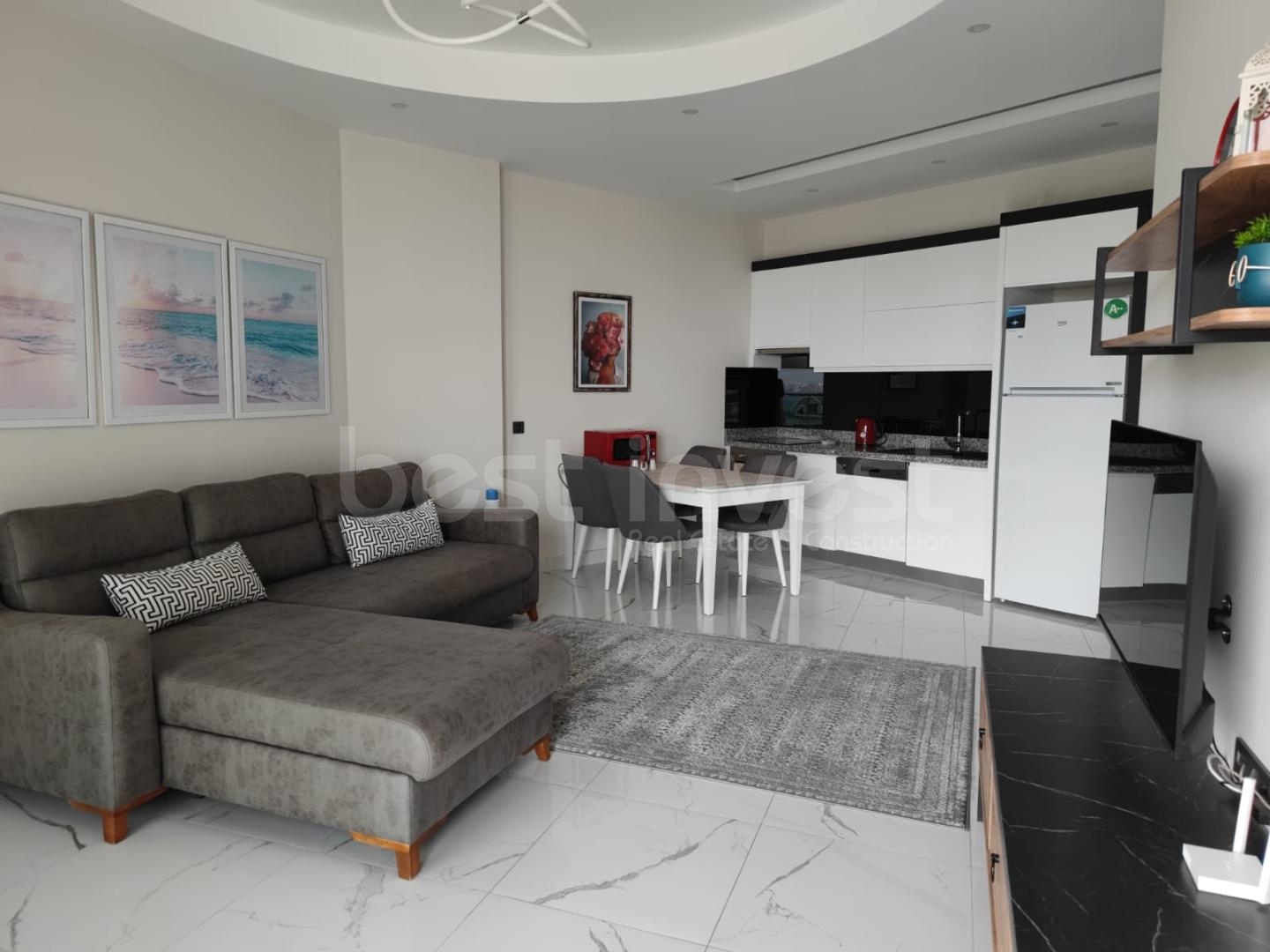 (English) Alanya / Kargicak Our 1+1 60 m² flat on the 4th floor of a 5-storey building is for sale with the assurance of Best Invest. The flat is fully furnished and has ceramic floor, shower cabin, hilton bathroom, cable/satellite system, American kitchen, and balcony. Our flat is on the seafront site. Site Features: outdoor swimming pool Indoor swimming pool SPA Pergola basketball court tennis court Ping pong restaurant Bath Sauna fitness massage room Billiards children's playroom Movie theater Lift Generator Security camera CONTACT: +90 530 258 14 44 +90 242 528 55 51