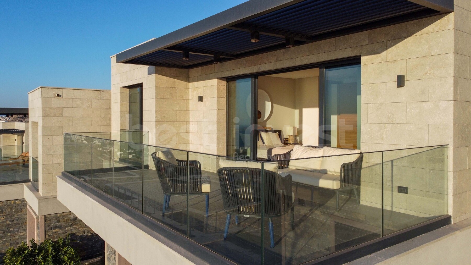 Type 1 Duplex: Priced from 1,650,000 Euros, these duplex villas offer 214 square meters of net living space, 4 bedrooms and 4 bathrooms in the main house, 1 room & 1 bathroom in the guest house, private indoor parking for 2 cars, and a 30 square meter private pool.