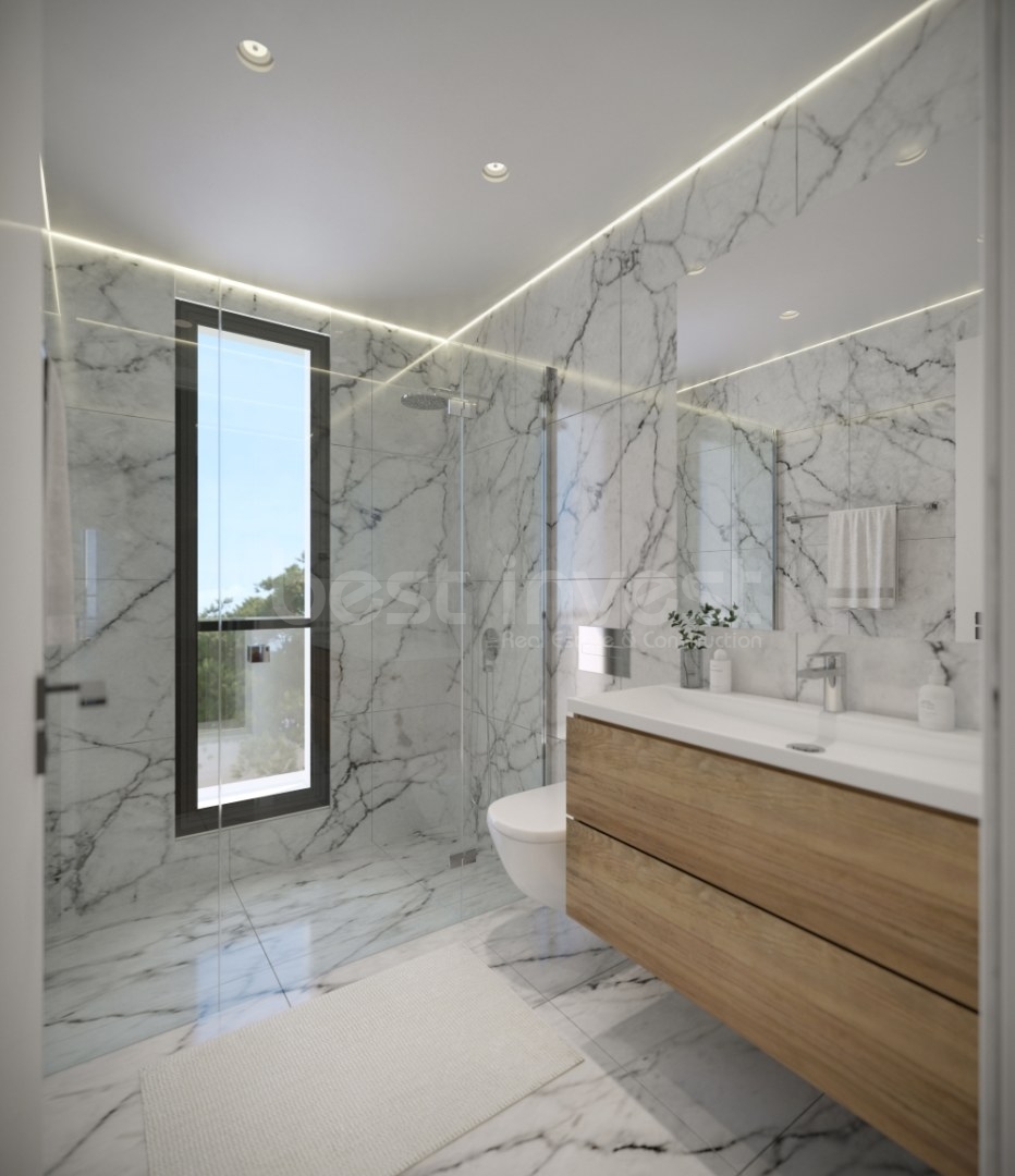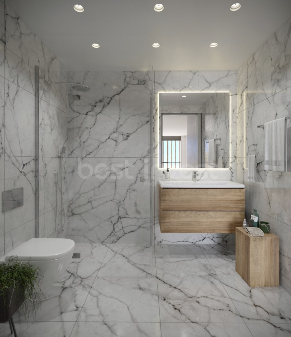 The residences boast signature finishes across building blocks A and B, including underfloor heating, VRF conditioning, semi-solid parquet floors, top-notch sanitary ware, marble-clad bathrooms, thermal aluminum windows with double glazing, secure entrance doors, and high-standard kitchen cabinets.