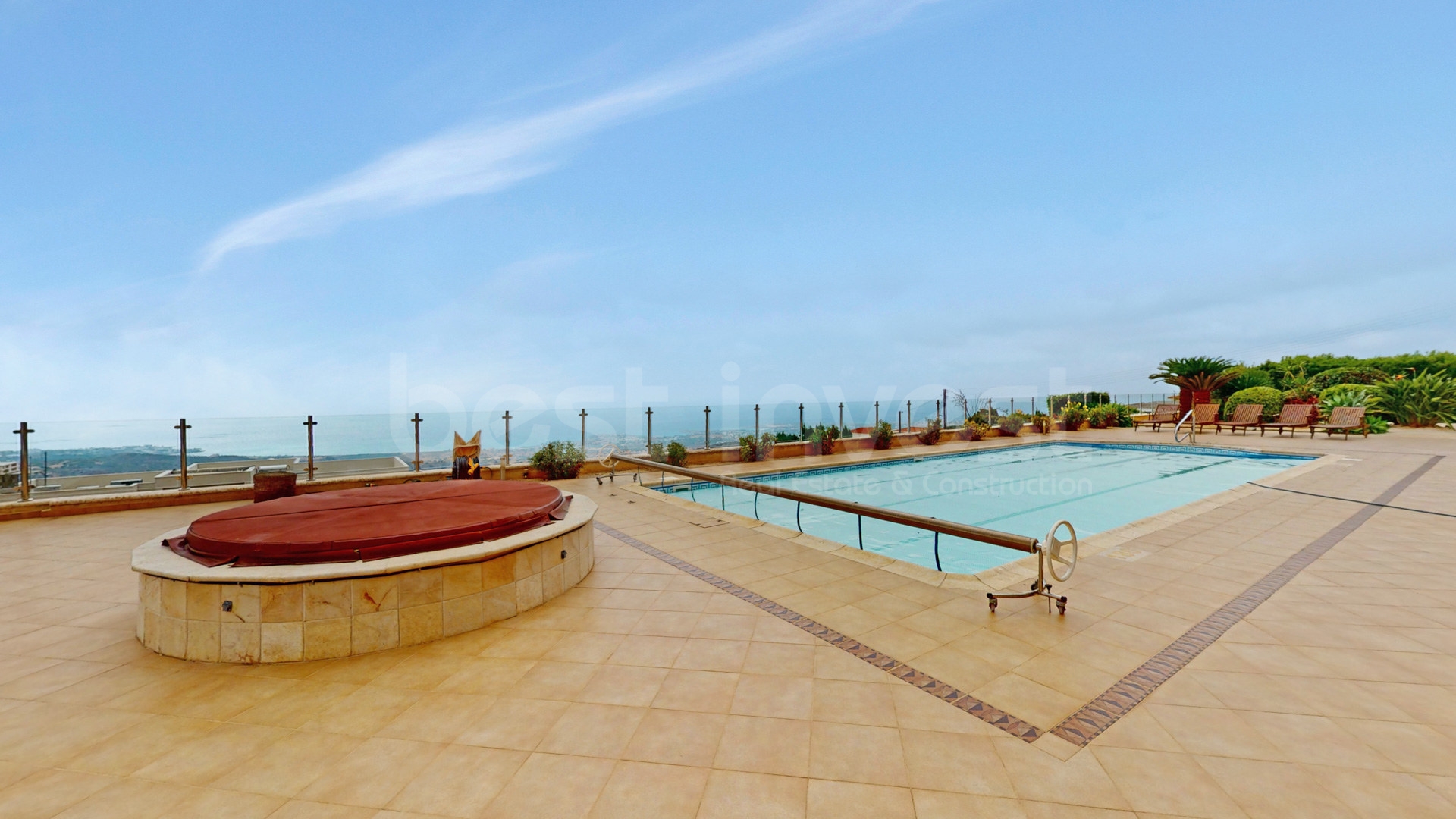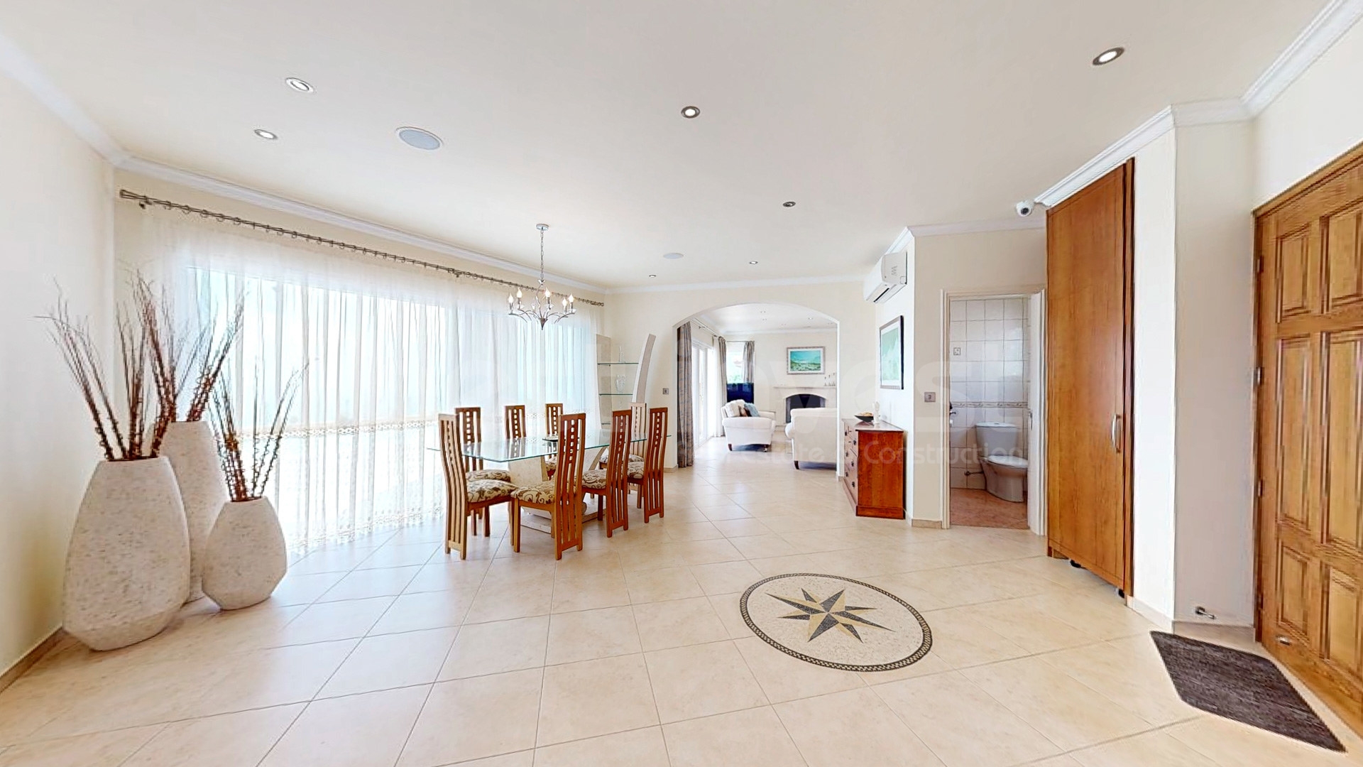 Lines between interior and exterior are all but erased with floor-to-ceiling glass doors from each area of the ground floor opening out to a covered veranda, a vast outdoor area, a large tranquil swimming pool with Roman steps, Jacuzzi, water fountain and BBQ/bar area. This area offers the ultimate space for alfresco dining, entertaining and relaxing with family and friends, whilst enjoying spectacular unobstructed sea views.