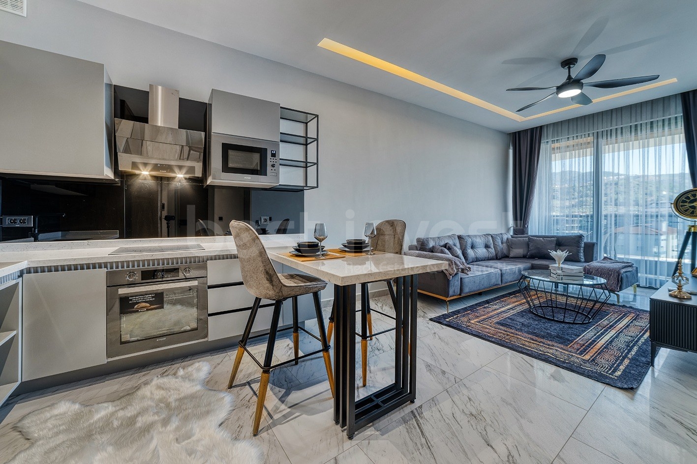Via Mar Residence, расположенная в районе Каргыджак, одном из любимых районов Алании, - это не только жилой проект, но и особое жилое пространство, предлагающее все привилегии современной жизни. Эта особенная квартира расположена на 4-м этаже и спроектирована в концепции 1+1. Эта квартира площадью 45 квадратных метров со вкусом обставлена как стильными, так и функциональными предметами, обеспечивая комфортное проживание для своих жильцов.