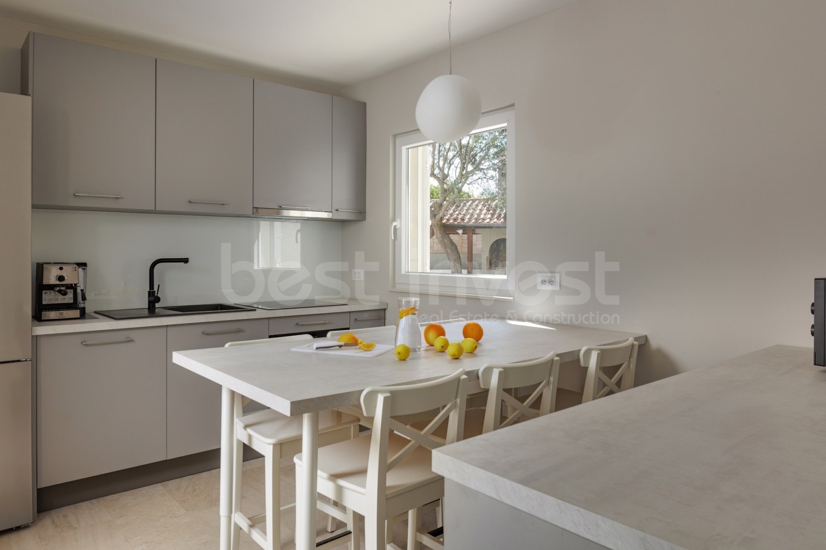 Hırvatistan'ın Istria bölgesinin dingin güzelliği içinde yer alan, 2014 yılında inşa edilmiş ve 488 m2'lik geniş bir arsayı kapsayan bu enfes villaya hoş geldiniz. Lüks ve konforun kusursuz bir karışımını sunan bu modern mücevher, 165 m2'lik cömert bir yaşam alanına sahip olup iki kata yayılmaktadır.