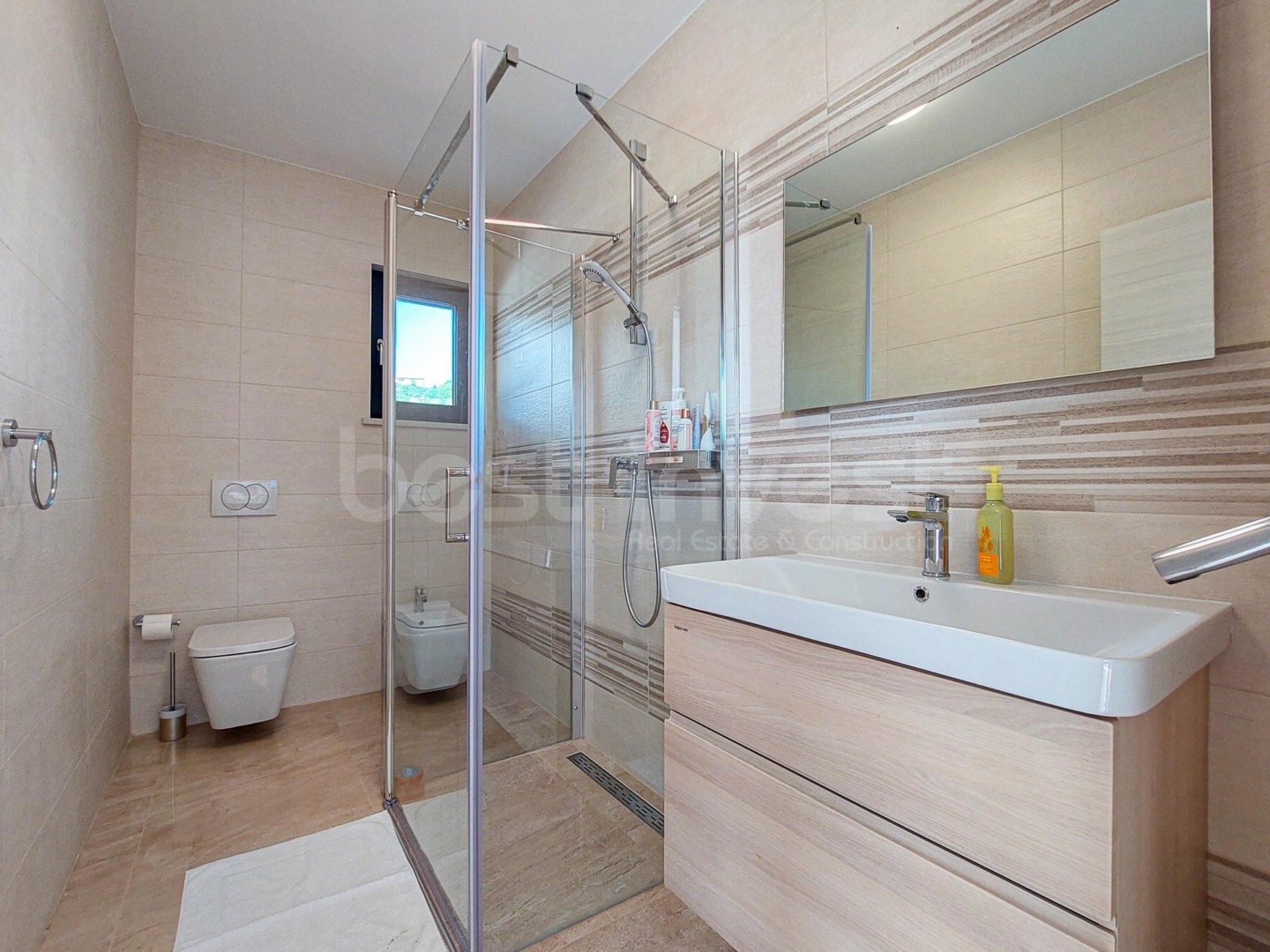 ÖZELLİKLER: Evin tamamındaki yerden ısıtma ile konforun zirvesini yaşayın. Villada sürgülü duvarlar, klima ve imitasyon mermer fayanslarla süslenmiş zeminler ile alüminyum marangozluk bulunmaktadır. Zemin kata çıkan merdiven aynı zarif tondaki mermerden yapılmıştır.