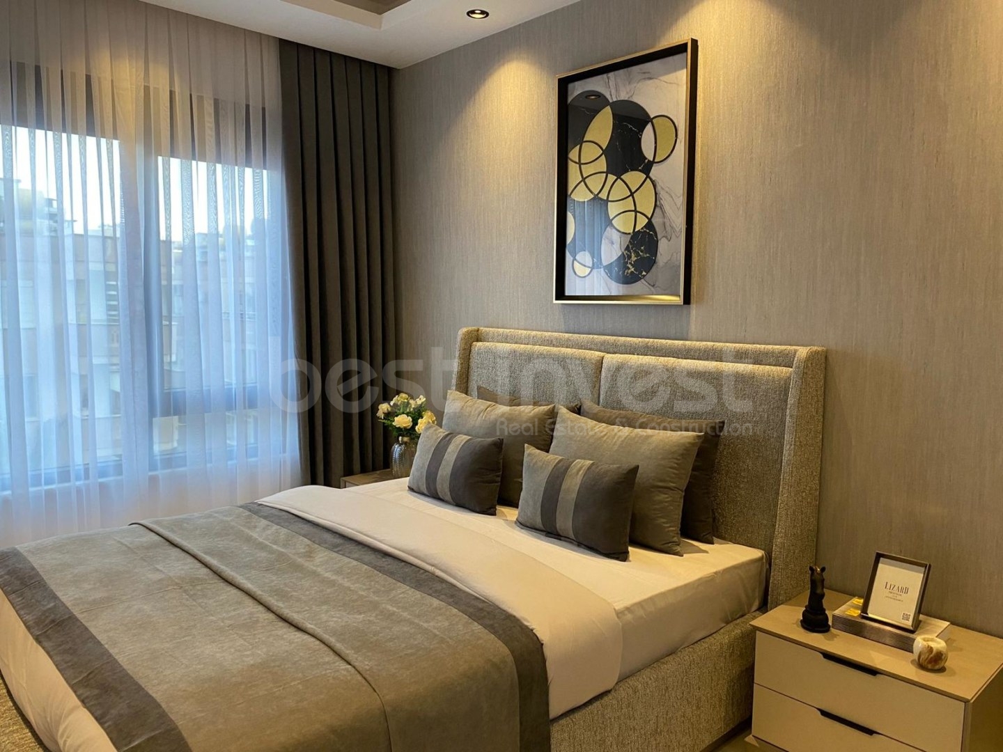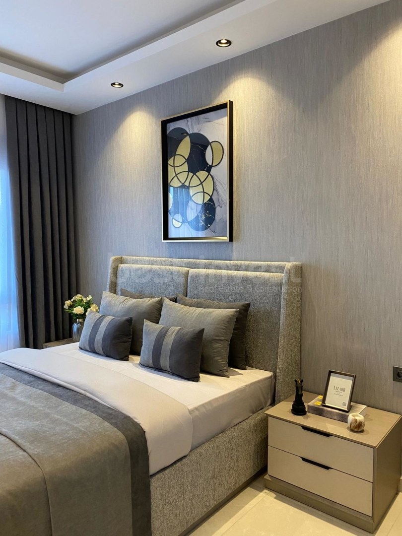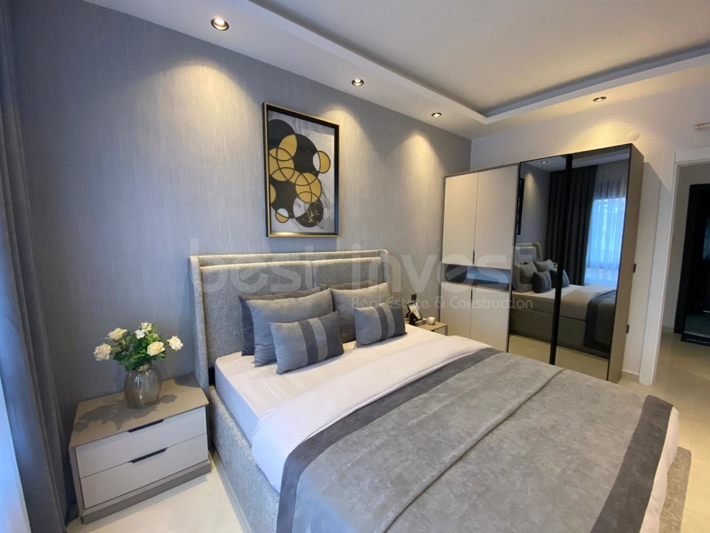 (English) A 50 m² 1+1 furnished apartment of 50 m² on the 5th floor of a 12-storey building built in 2024 is for sale in Alanya, Mahmutlar neighborhood. The south facing apartment has nature and sea views and is only 600 meters from the sea. This apartment is equipped with social amenities that meet all the requirements of modern life. Outdoor and indoor swimming pools, fitness center, Turkish bath, indoor and outdoor children's playgrounds, pool bar, outdoor car parking, cafe, generator, 24/7 camera and security services, football and basketball courts, tennis court, aqua park, sauna and massage room. Offering an ideal option for those who want to live a comfortable life in the unique atmosphere of Mahmutlar with nature and sea views, this apartment is an excellent opportunity for both investment and living.