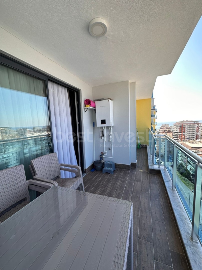 Alanya Mahmutlar'da yer alan bu 1+1 daire, 60 m² kullanım alanı ve 7. kat konumuyla muhteşem deniz ve dağ manzarası sunmaktadır. Mobilyalı olarak sunulan daire, kombi kalorifer sistemi ile ısıtılmakta olup, dört mevsim konforlu bir yaşam sağlar. Modern tasarımı ve ferah alanlarıyla öne çıkan bu daire, hem sakinlik arayanlar hem de sosyal olanaklara yakın olmak isteyenler için ideal bir seçenektir.