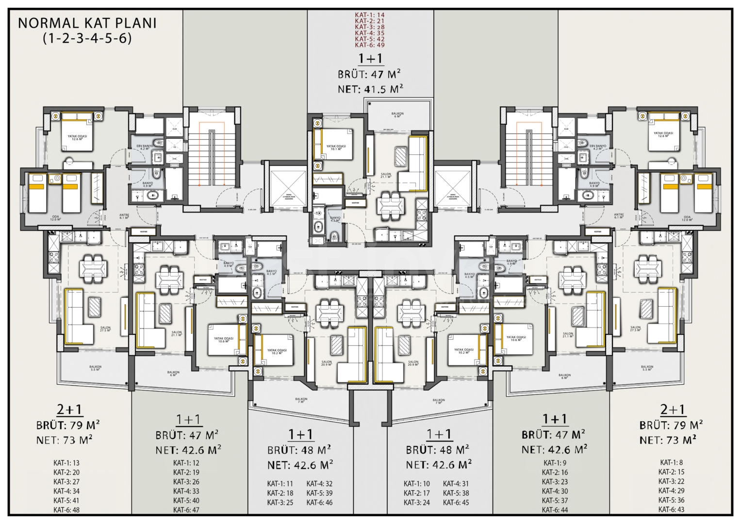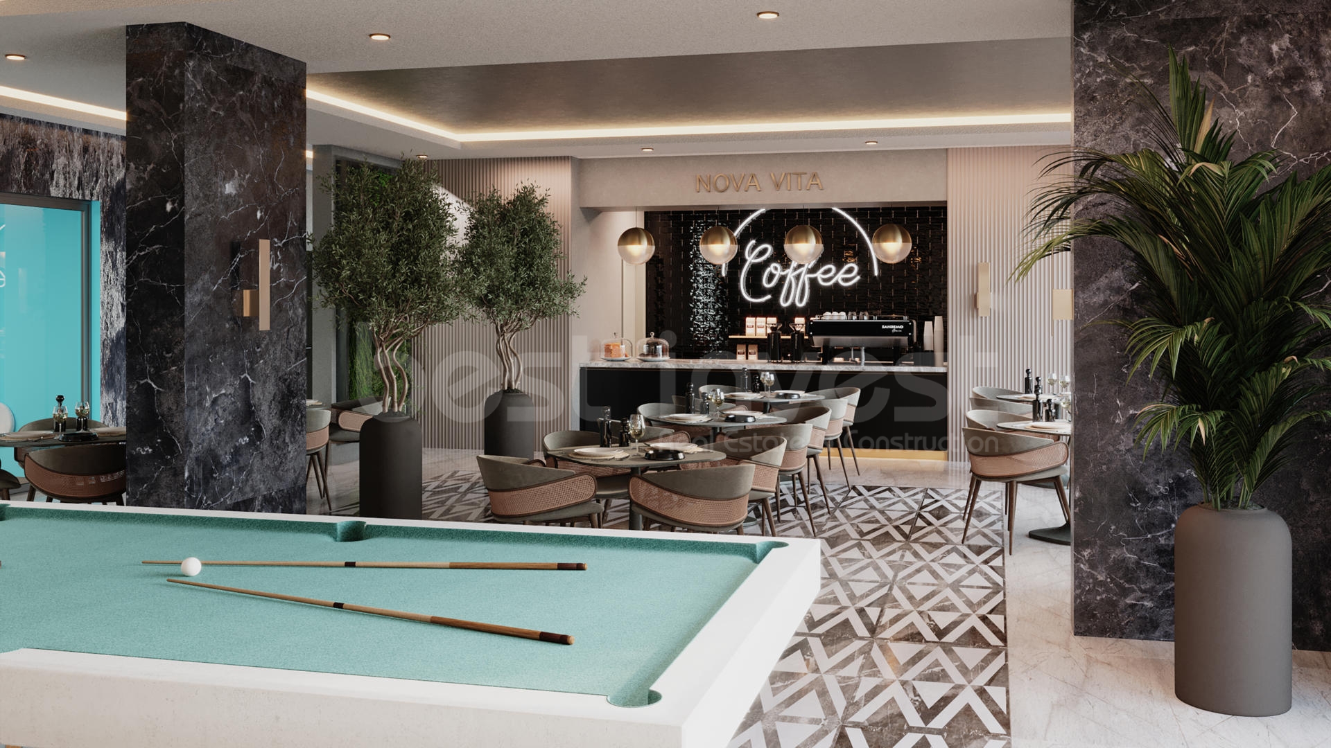 Indoor facilities; Traditional and modern recreational facilities such as Turkish bath, sauna, steam room, socializing in the cafe, entertainment areas such as billiard table, bar and movie theater are also included in the project. There is also a fitness center for a healthy life and a fun kids club for children. Common storage areas and hygienic WC, washbasin and shower facilities complete the modern and functional structure of the project.
