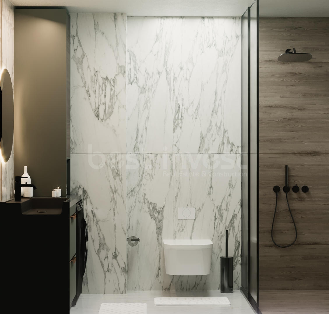 The outdoor facilities include a swimming pool where you can cool off on hot summer days, a large sun terrace where you can soak up the sun and lounges where you can relax in comfort. There is also a safe and fun playground for children, a tennis court and jogging path for sports lovers. Camellias, barbecue areas and large green areas where you can relax in the garden and spend time in touch with nature are also included in the project. Parking areas for your vehicles and special tracks for bicycle lovers are also provided.