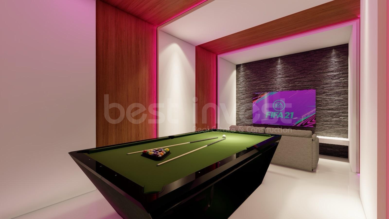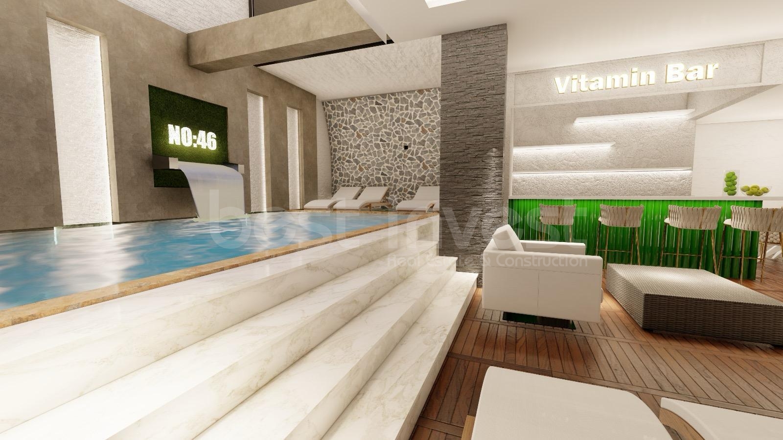 The villa, which has mountain and sea views, attracts attention with its large interior volume and stylish decoration, and has rich social facilities that increase the quality of life. Facilities such as indoor and outdoor swimming pools, Turkish bath, sauna, barbecue area, large garden and outdoor car park provide an ideal environment for both daily life and entertaining guests.
