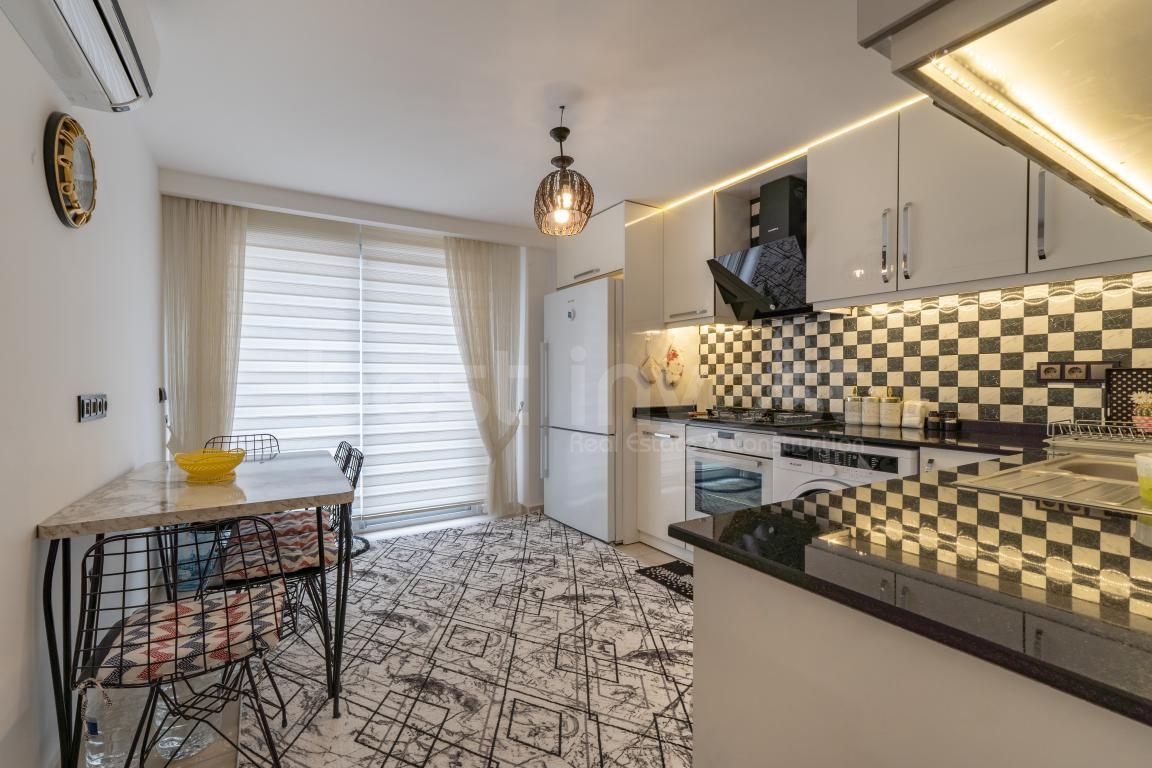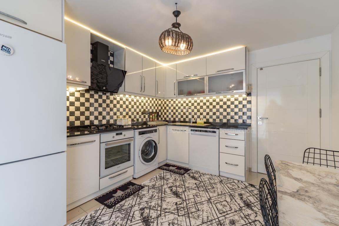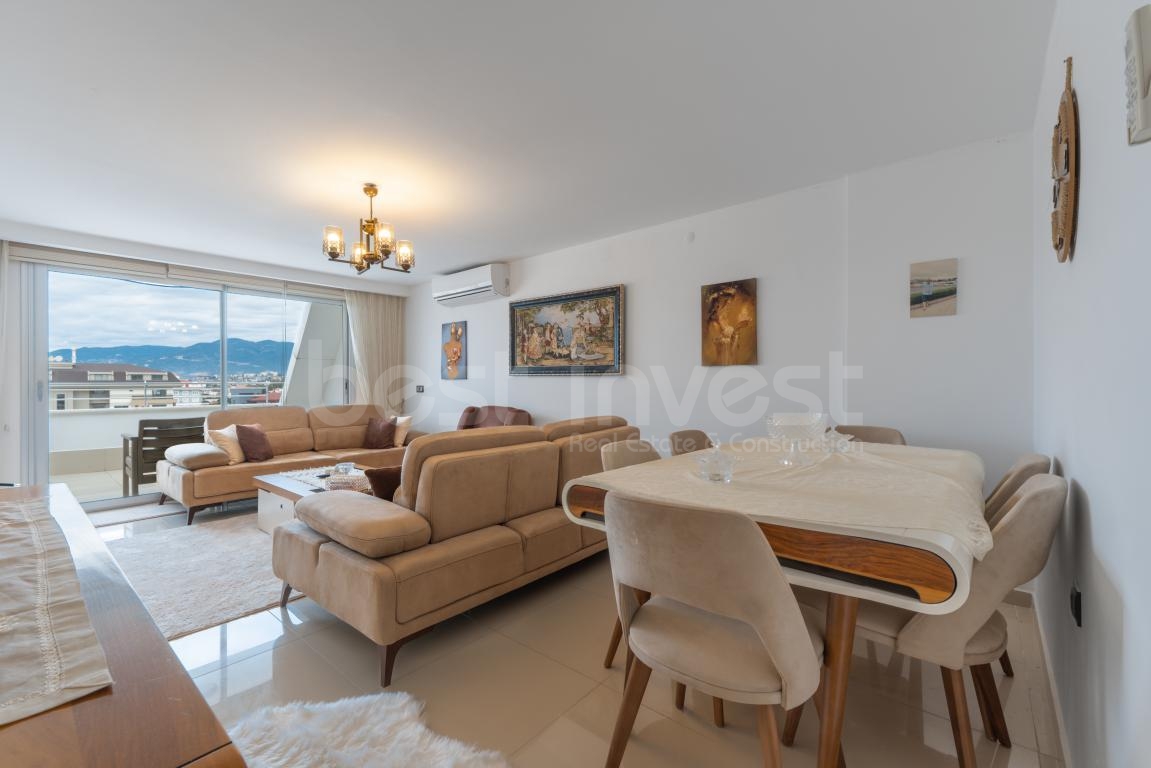 In einem der beliebtesten und ruhigsten Viertel von Alanya, dem Kestel Mahallesi, nur 150 Meter vom Meer entfernt, bietet diese 3+1 möblierte Maisonette-Wohnung mit separater Küche ein komfortables und privilegiertes Leben.