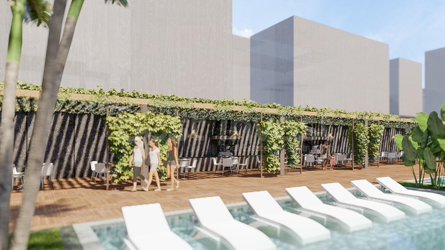 Large outdoor swimming pool, indoor parking lot with a capacity of 102 cars, water park with slides, children's pool, pool bar, outdoor children's playground, indoor children's playroom, billiards, table tennis, cinema, golf simulation room, SPA center, barbecue, 24/7 security.