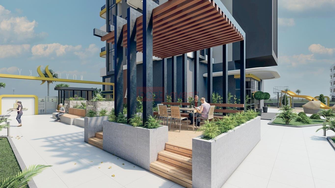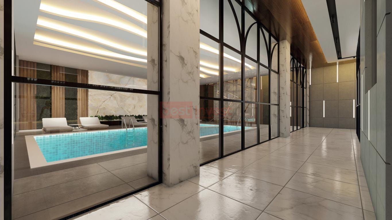 (English) Alanya Mahmutlar The project, where social areas and city life are intertwined, covers an area of ​​3309 square meters. Consisting of 2 blocks and 12 floors, the site offers different apartment options as 1+1, 2+1 and 4+1. Our project is 120 meters from the sea. The project has been prepared at a very high level in terms of social areas; Outdoor-indoor swimming pool, Turkish bath, sauna, children's playground, fitness, parking garage and reception area are just a few of them. The project, which is intertwined with social areas and city life, covers an area of ​​3350 square meters. Consisting of 2 blocks and 12 floors, the site offers different apartment options such as 1+1, 2+1 and 4+1. In addition to being 120 meters from the sea, our project is in a position to meet all your needs with its cafe, restaurant, bar and shopping center options. Steel doors, interior automation systems, special size ceramics on surfaces that receive water, antibacterial walls for your health and insulated exterior materials are used in our apartments. In addition to these, there are 24-hour private security systems, generators and fire detectors in our project. Contact: +90 551 694 07 07 +90 242 528 55 51